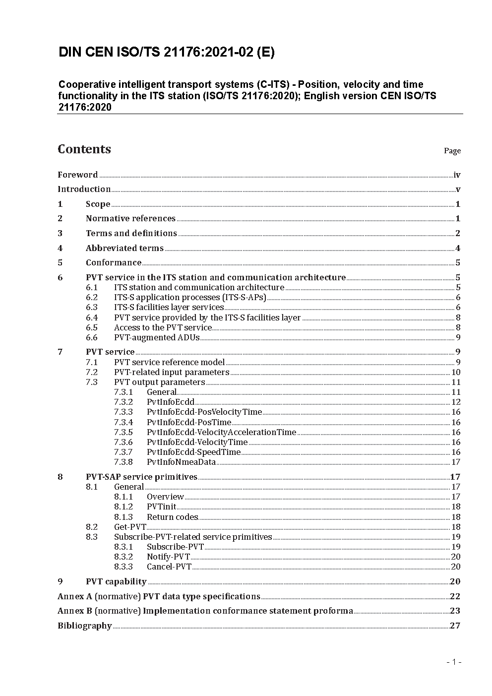 Cooperative intelligent transport systems (C-ITS) - Position, velocity and time functionality in the ITS station (ISO/TS 21176:2020); English version CEN ISO/TS 21176:2020