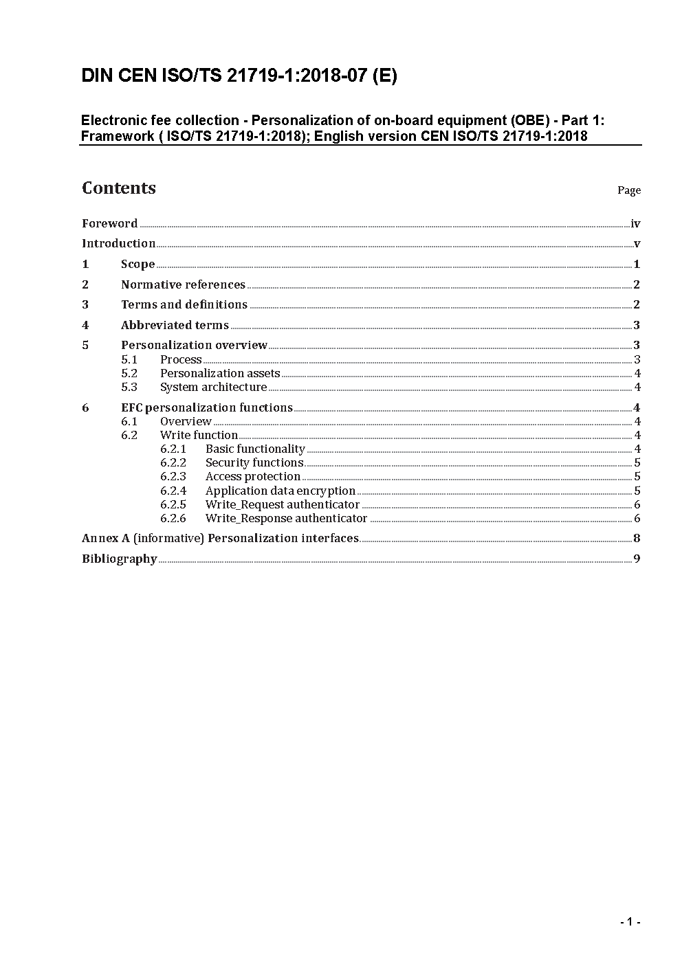 Electronic fee collection - Personalization of on-board equipment (OBE) - Part 1: Framework (ISO/TS 21719-1:2018); English version CEN ISO/TS 21719-1:2018