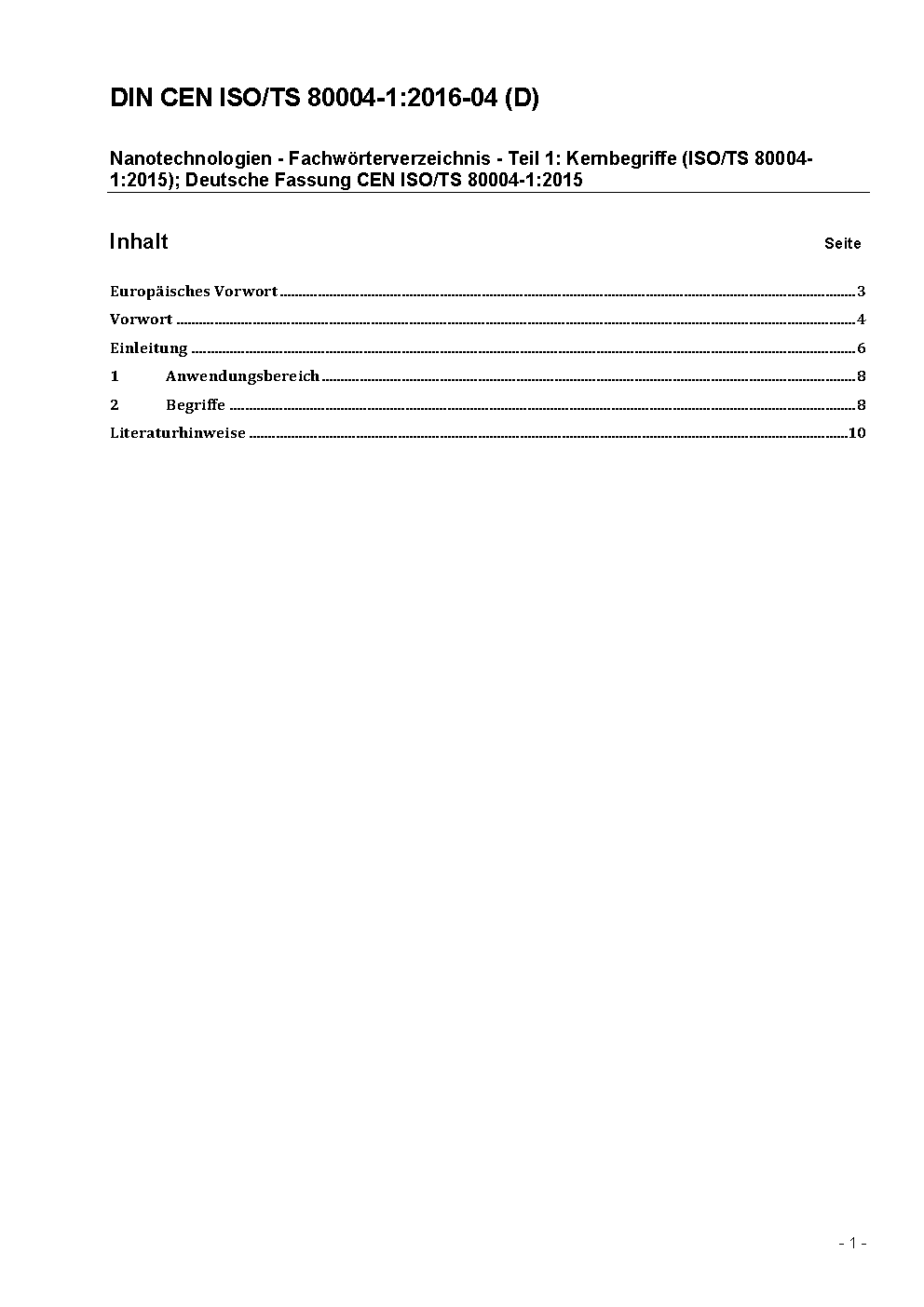 Nanotechnologies - Vocabulary - Part 1: Core terms (ISO/TS 80004-1:2010); German version CEN ISO/TS 80004-1:2014