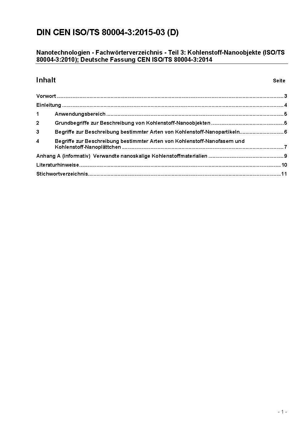 Nanotechnologien - Fachwörterverzeichnis - Teil 3: Kohlenstoff-Nanoobjekte (ISO/TS 80004-3:2010); Deutsche Fassung CEN ISO/TS 80004-3:2014