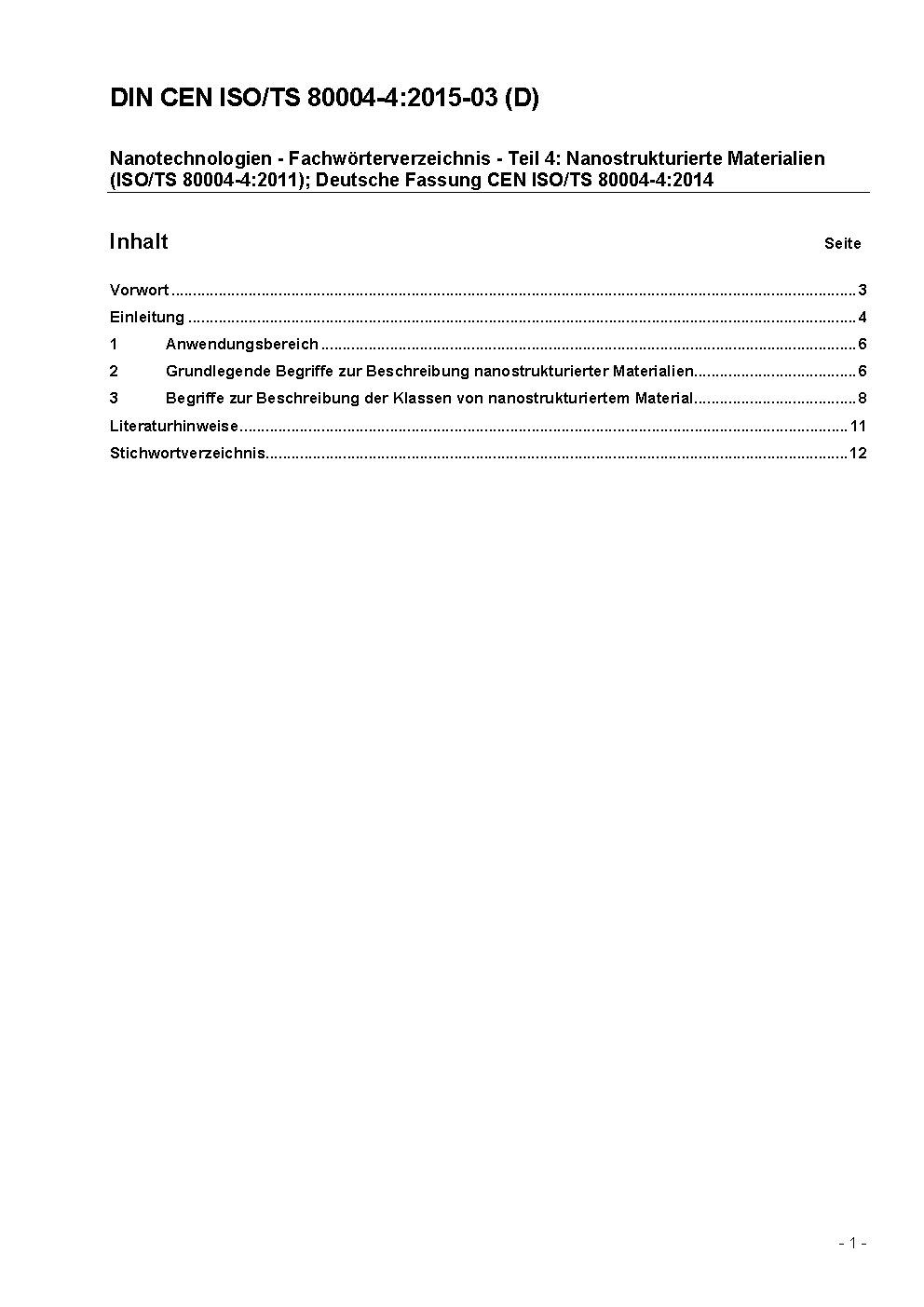 Nanotechnologies - Vocabulary - Part 4: Nanostructured materials (ISO/TS 80004-4:2011); German version CEN ISO/TS 80004-4:2014