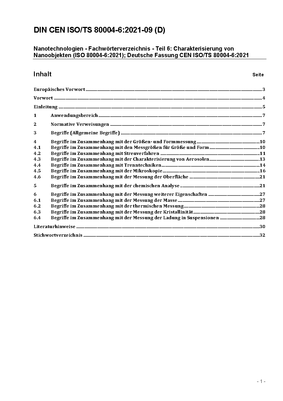 Nanotechnologien - Fachwörterverzeichnis - Teil 6: Charakterisierung von Nanoobjekten (ISO/TS 80004-6:2021); Deutsche Fassung CEN ISO/TS 80004-6:2021