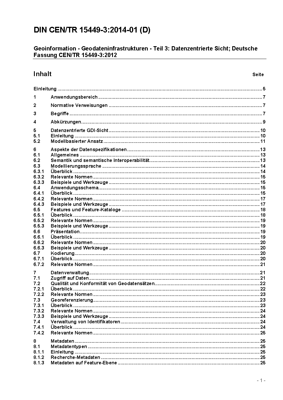 Geographic information - Spatial data infrastructures - Part 3: Data centric view; German version CEN/TR 15449-3:2012