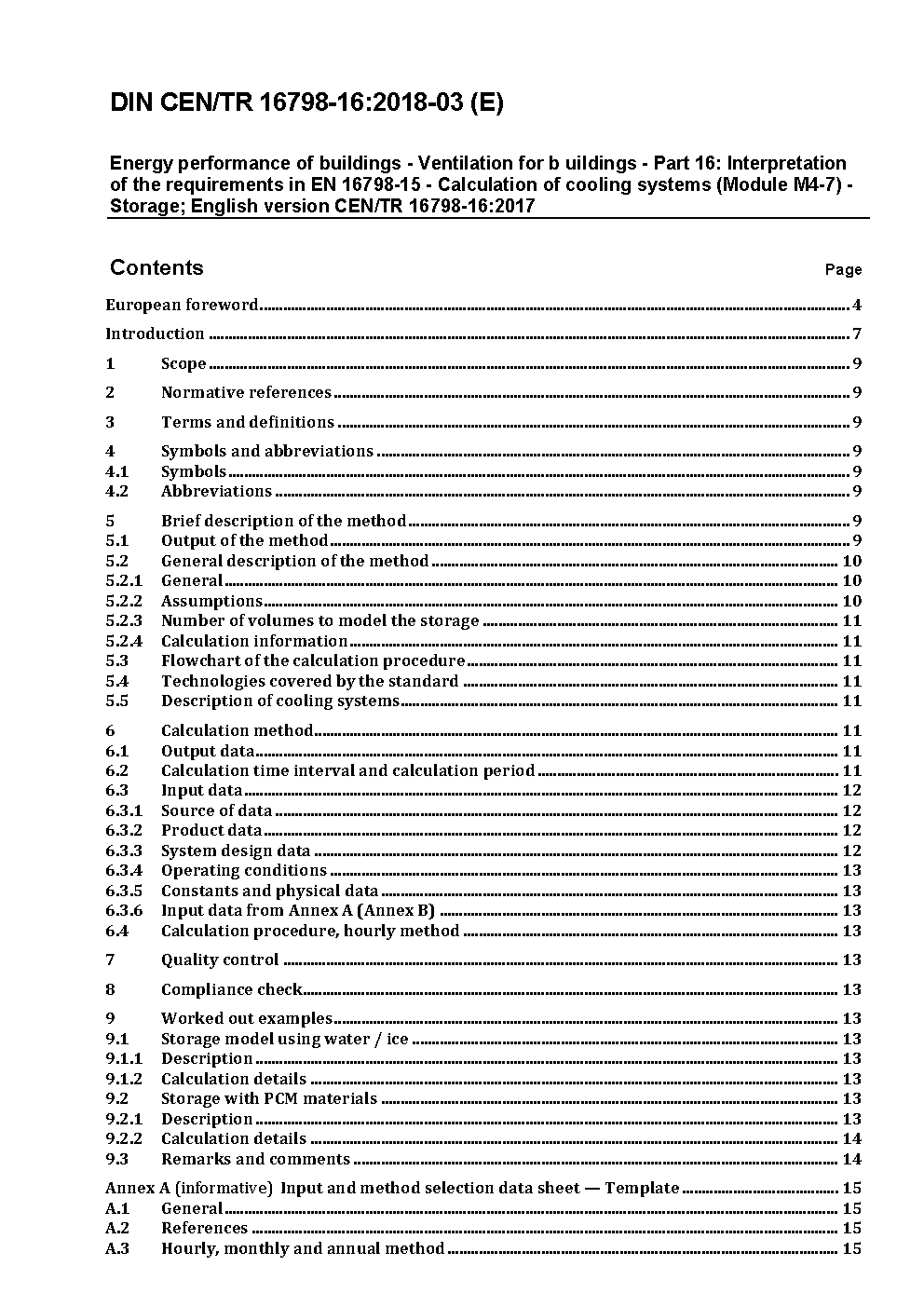 Energy performance of buildings - Ventilation for buildings - Part 16: Interpretation of the requirements in EN 16798-15 - Calculation of cooling systems (Module M4-7) - Storage; English version CEN/TR 16798-16:2017