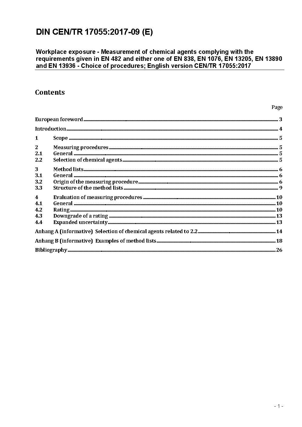 Exposition am Arbeitsplatz - Messung von chemischen Arbeitsstoffen, welche die Anforderungen nach EN 482 sowie nach einer von EN 838, EN 1076, EN 13205, EN 13890 und EN 13936 erfüllen - Auswahl von Verfahren; Englische Fassung CEN/TR 17055:2017