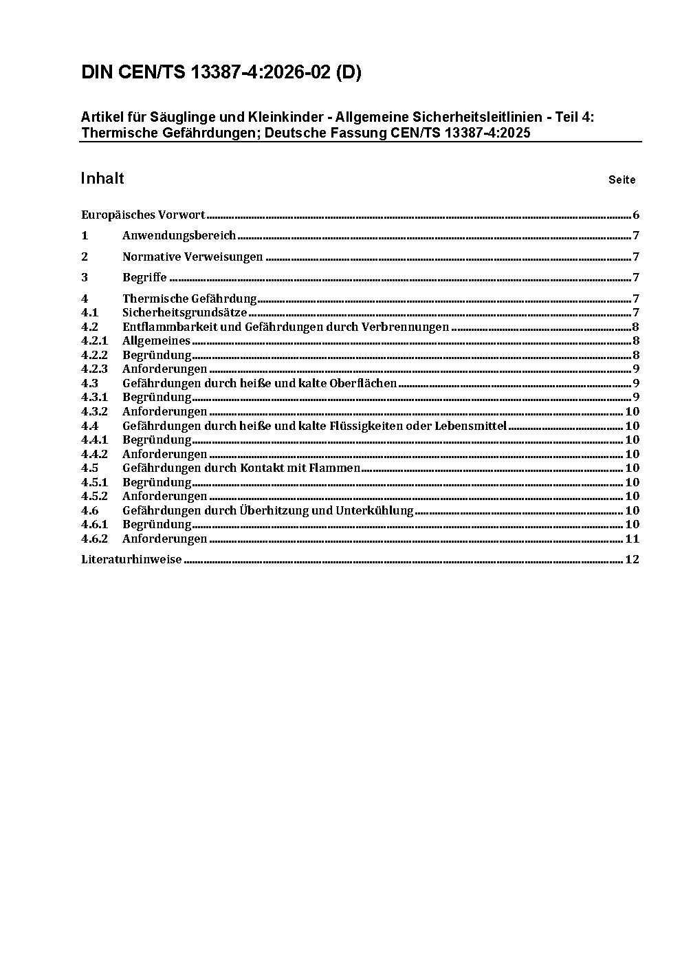 Artikel für Säuglinge und Kleinkinder - Allgemeine Sicherheitsleitlinien - Teil 4: Thermische Gefährdungen; Deutsche Fassung CEN/TS 13387-4:2025