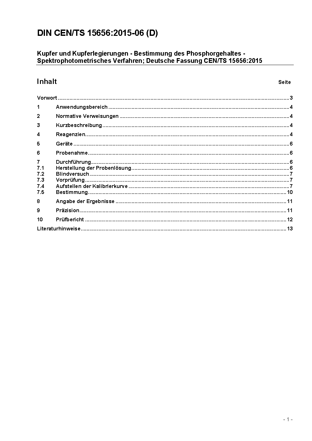 Kupfer und Kupferlegierungen - Bestimmung des Phosphorgehaltes - Spektrophotometrisches Verfahren; Deutsche Fassung CEN/TS 15656:2015