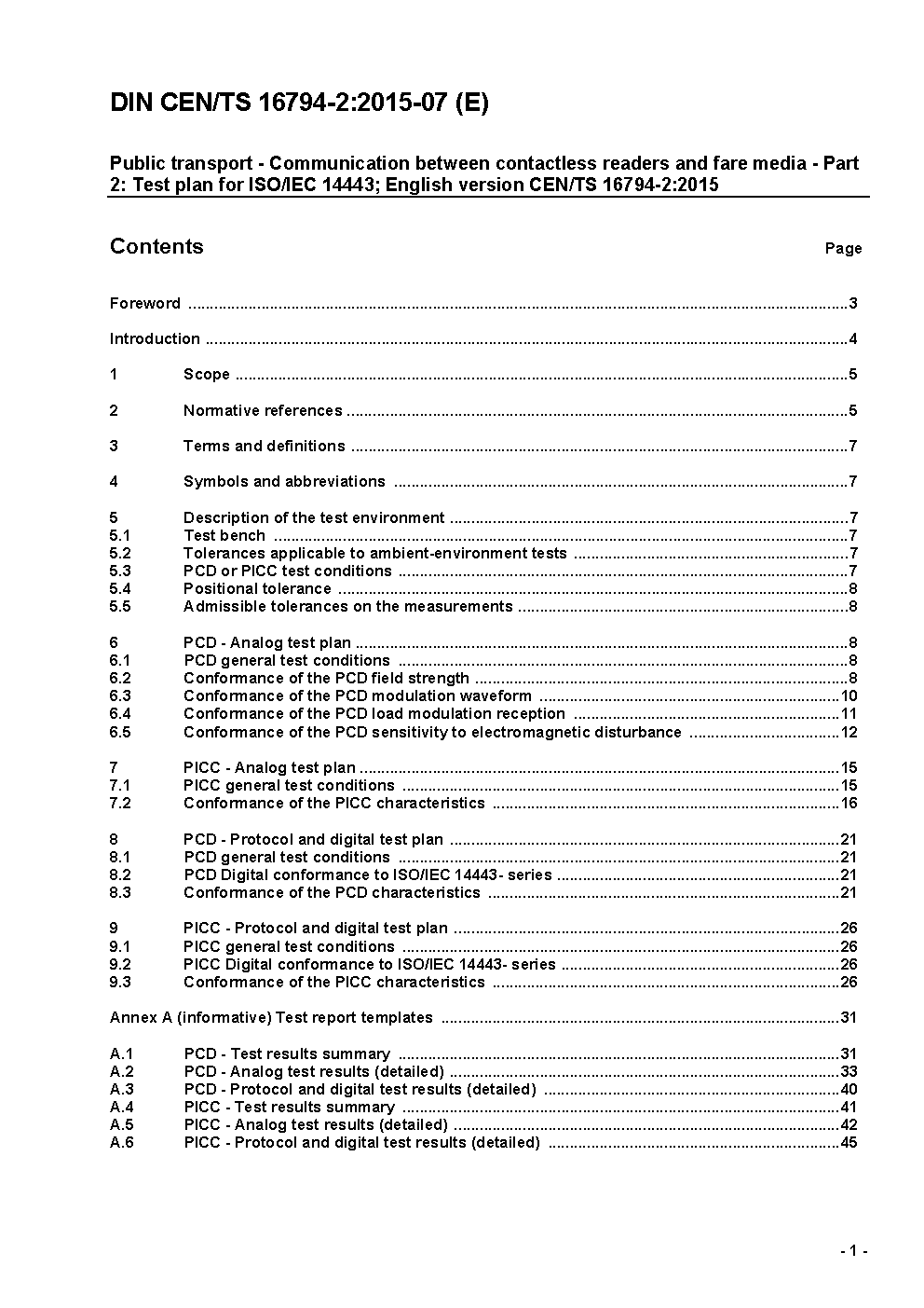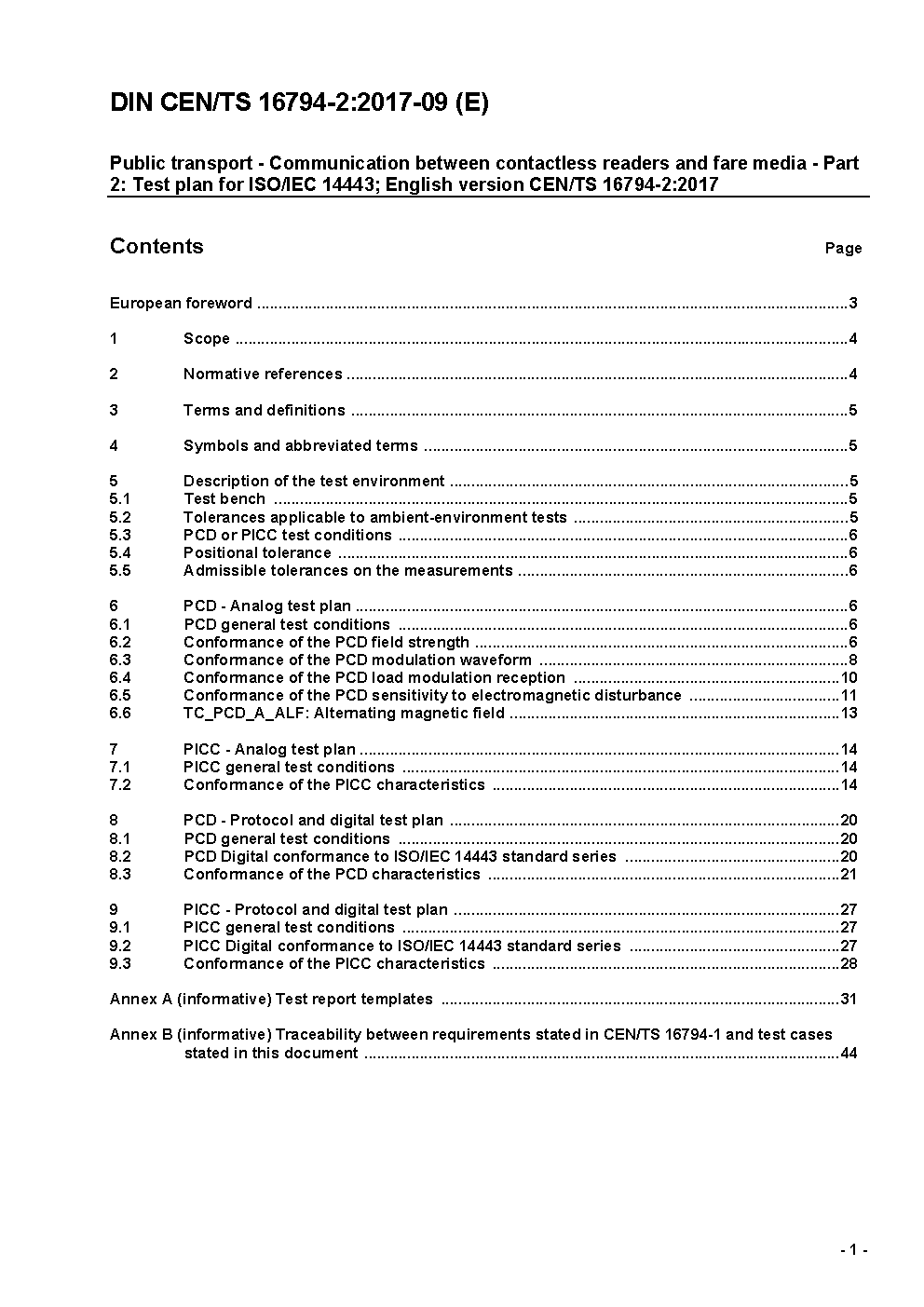 Public transport - Communication between contactless readers and fare media - Part 2: Test plan for ISO/IEC 14443; English version CEN/TS 16794-2:2019
