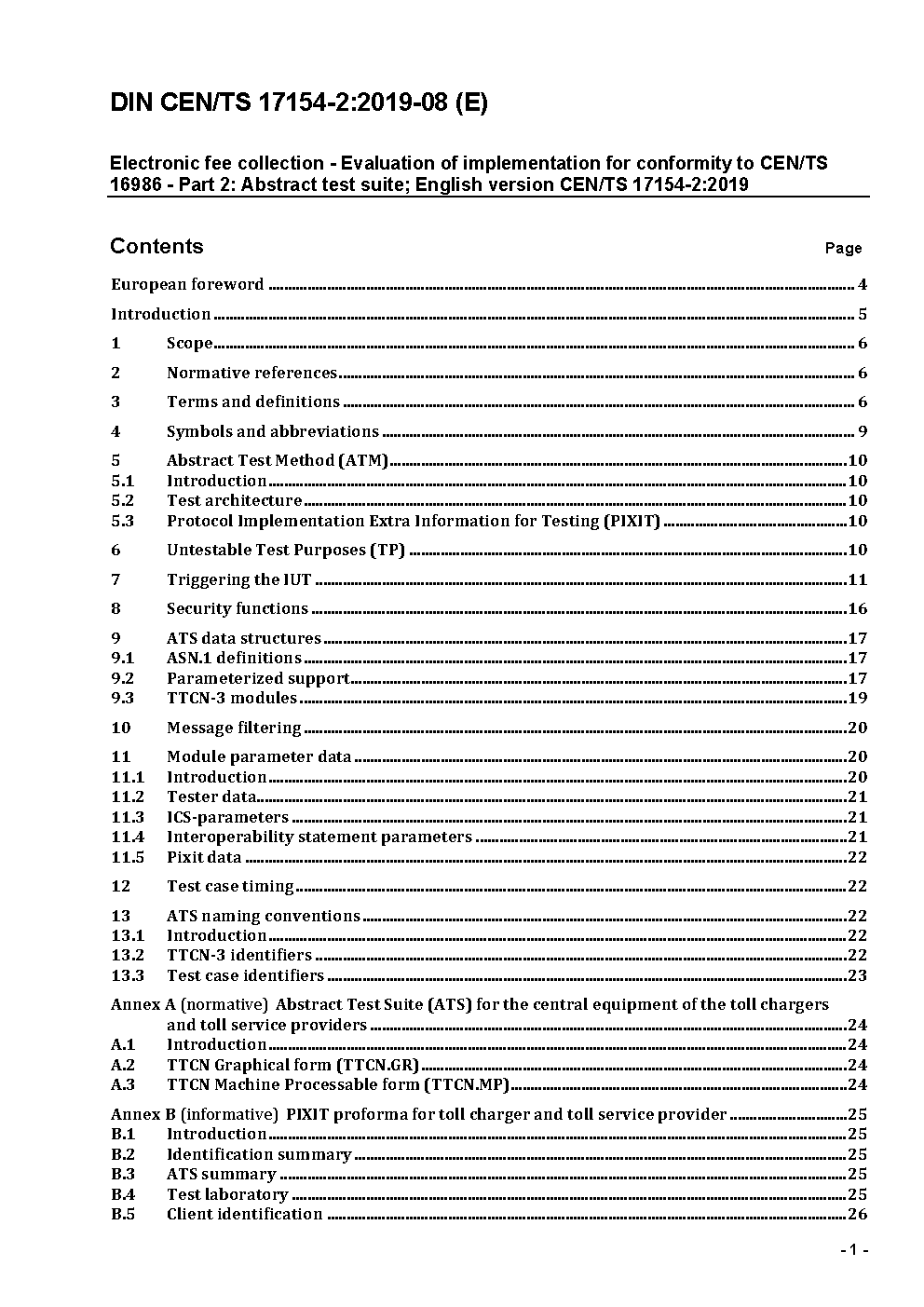 Electronic fee collection - Evaluation of implementation for conformity to CEN/TS 16986 - Part 2: Abstract test suite; English version CEN/TS 17154-2:2019