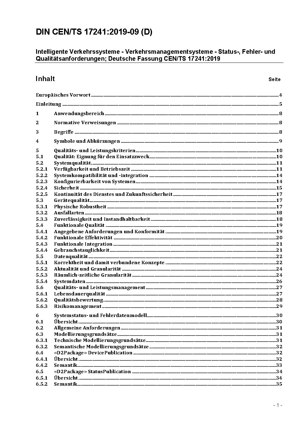 Intelligente Verkehrssysteme - Verkehrsmanagementsysteme - Status-, Fehler- und Qualitätsanforderungen; Deutsche Fassung CEN/TS 17241:2019