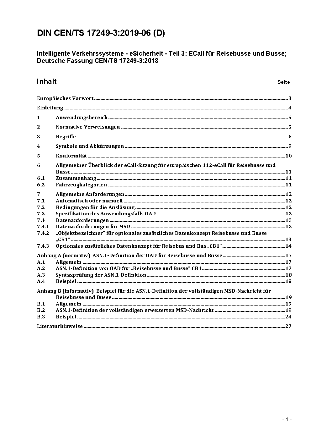 Intelligente Verkehrssysteme - eSicherheit - Teil 3: ECall für Reisebusse und Busse; Deutsche Fassung CEN/TS 17249-3:2018