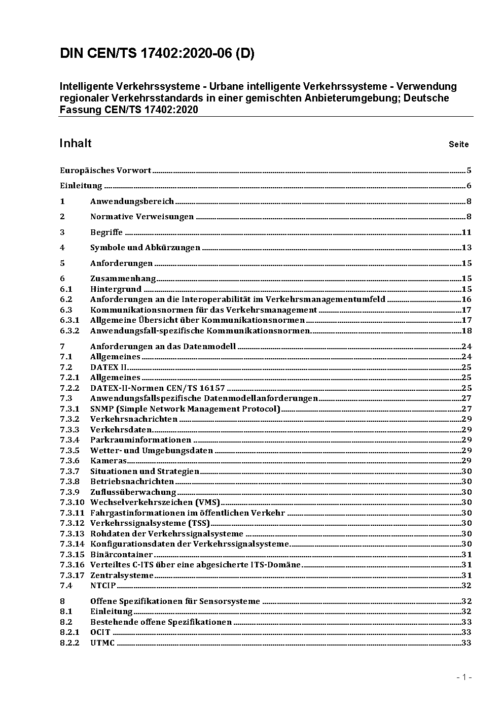 Intelligent transport systems - Urban ITS - Use of regional traffic standards in a mixed vendor environment; German version CEN/TS 17402:2020