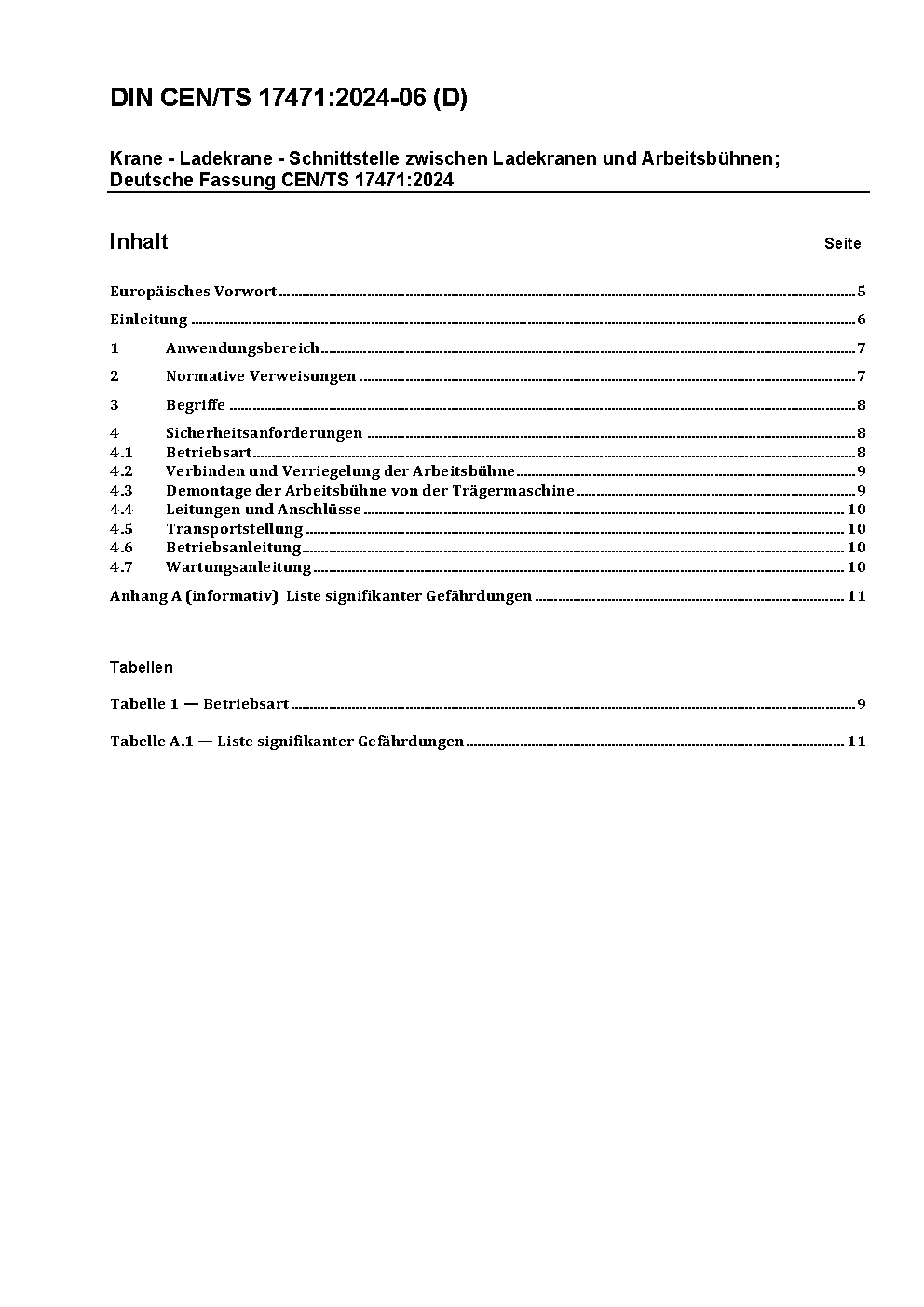 Krane - Ladekrane - Schnittstelle zwischen Ladekranen und Arbeitsbühnen; Deutsche Fassung CEN/TS 17471:2024