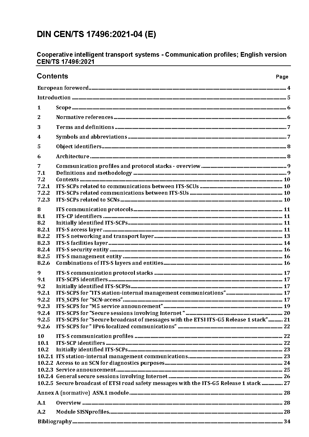 Cooperative intelligent transport systems - Communication profiles; English version CEN/TS 17496:2021