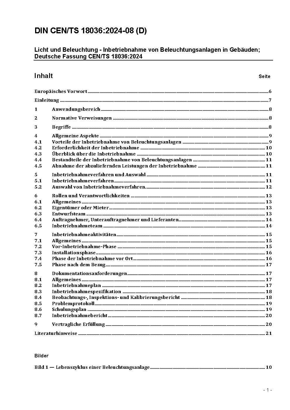 Licht und Beleuchtung - Inbetriebnahme von Beleuchtungsanlagen in Gebäuden; Deutsche Fassung CEN/TS 18036:2024