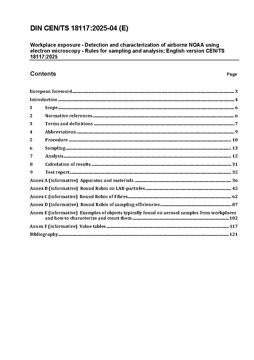 Workplace exposure - Detection and characterization of airborne NOAA using electron microscopy - Rules for sampling and analysis; English version CEN/TS 18117:2025