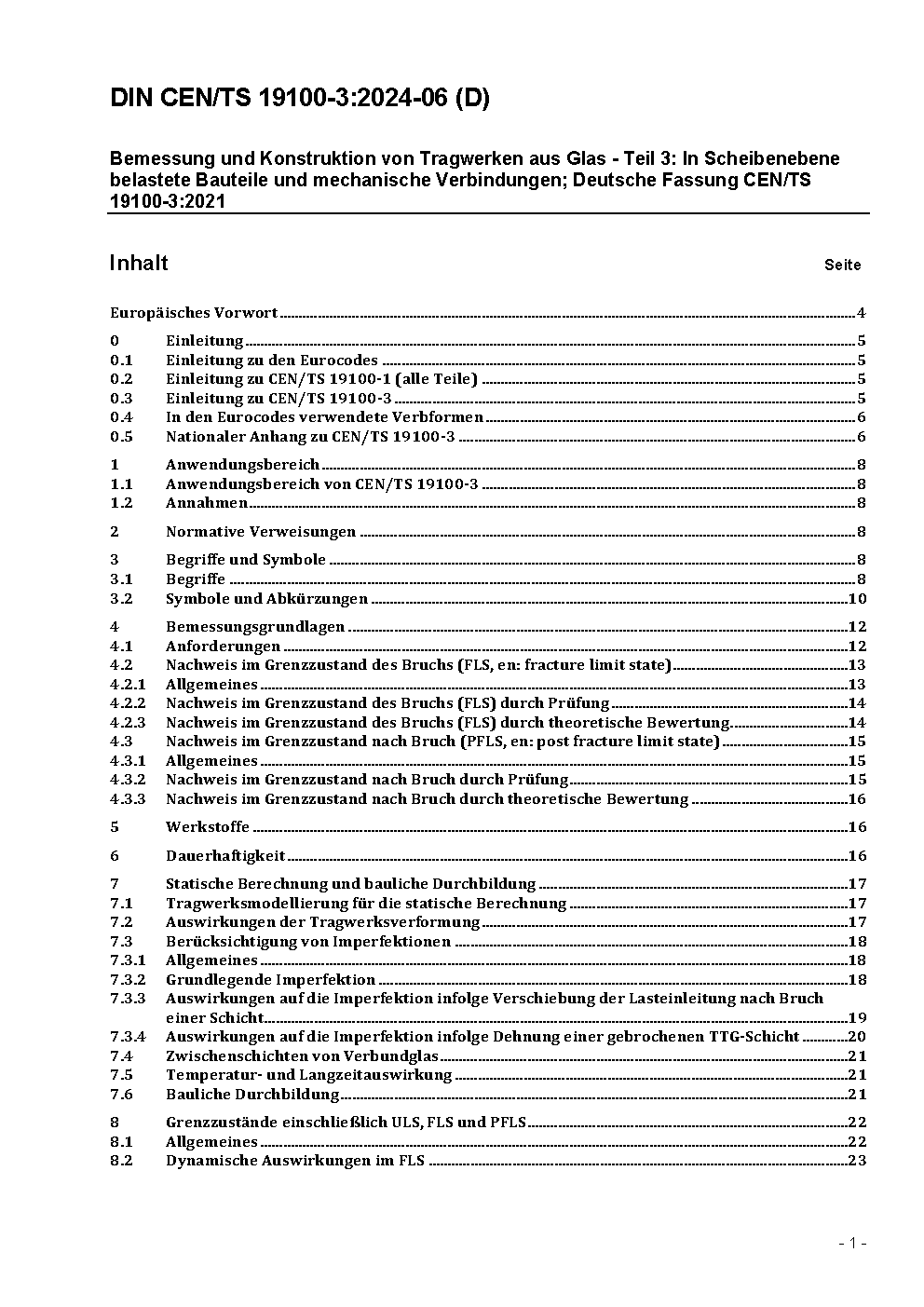 Design of glass structures - Part 3: Design of in-plane loaded glass components and their mechanical joints; German version CEN/TS 19100-3:2021