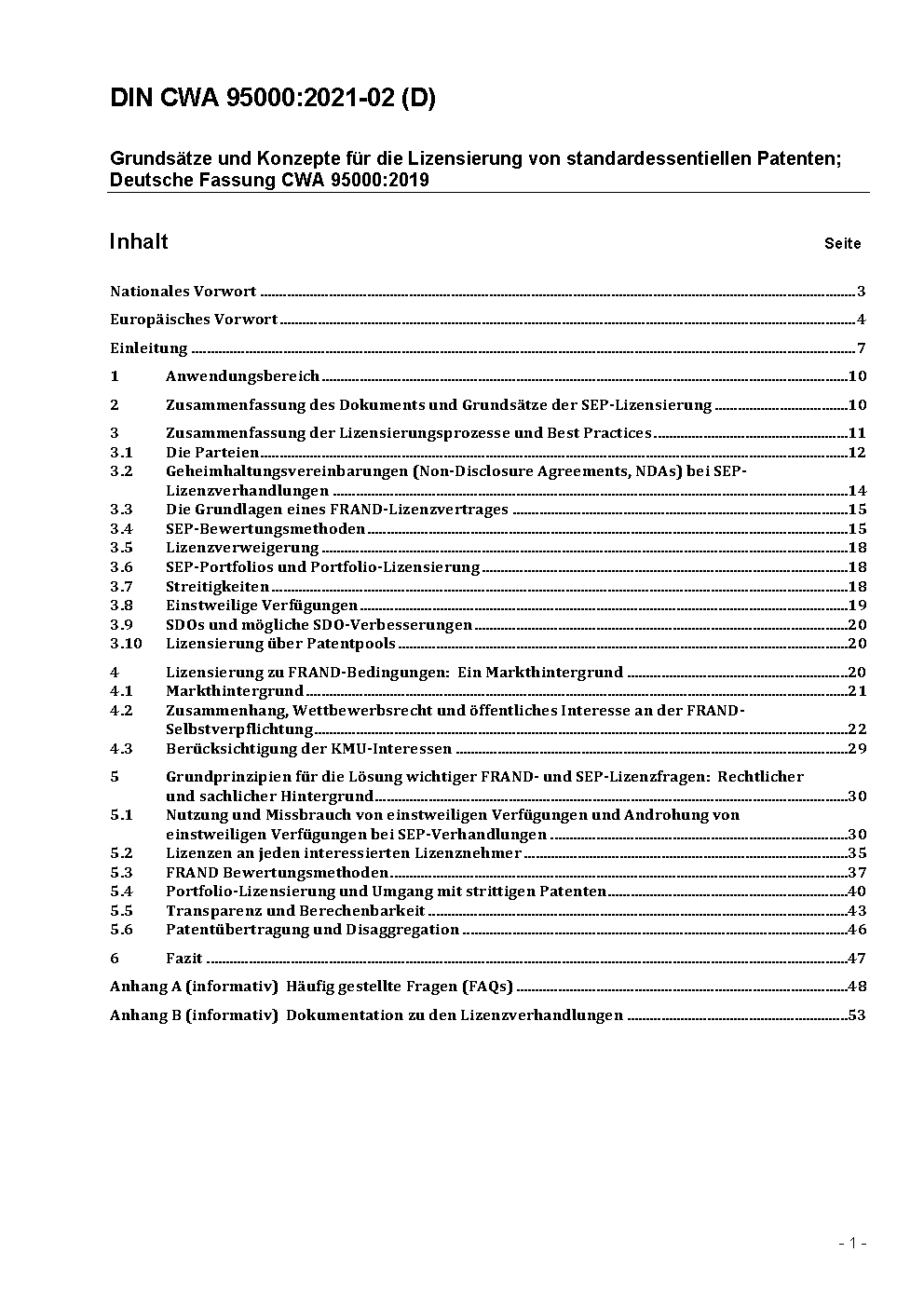 Core Principles and Approaches for Licensing of Standard Essential Patents; German version CWA 95000:2019