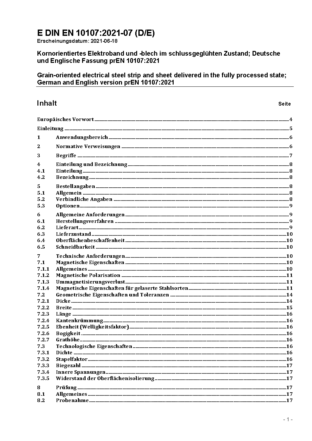 Grain-oriented magnetic steel sheet and strip; German version prEN 10107:1993