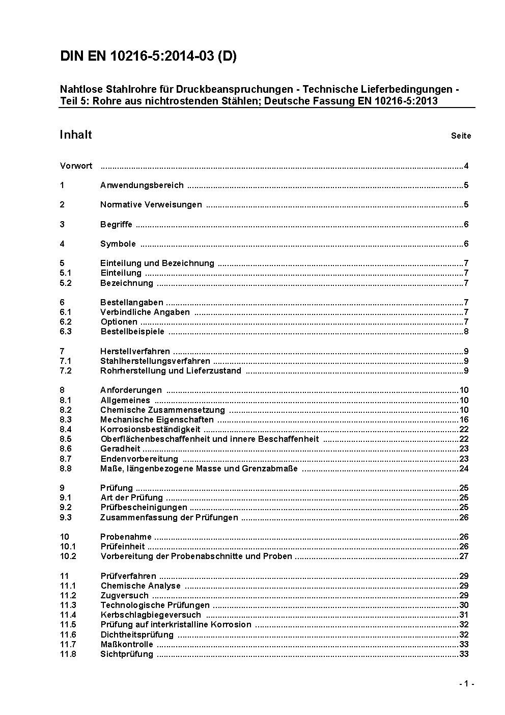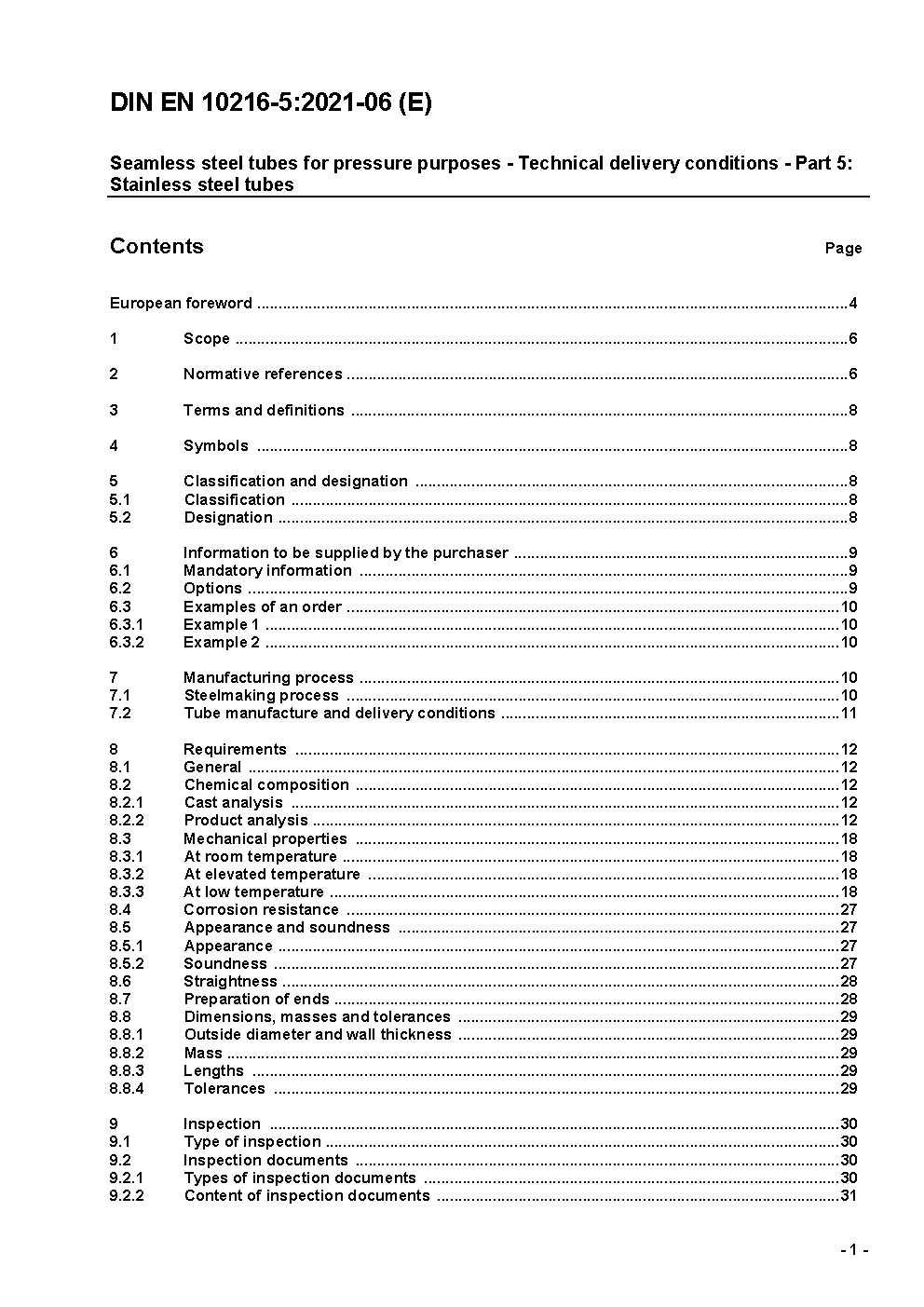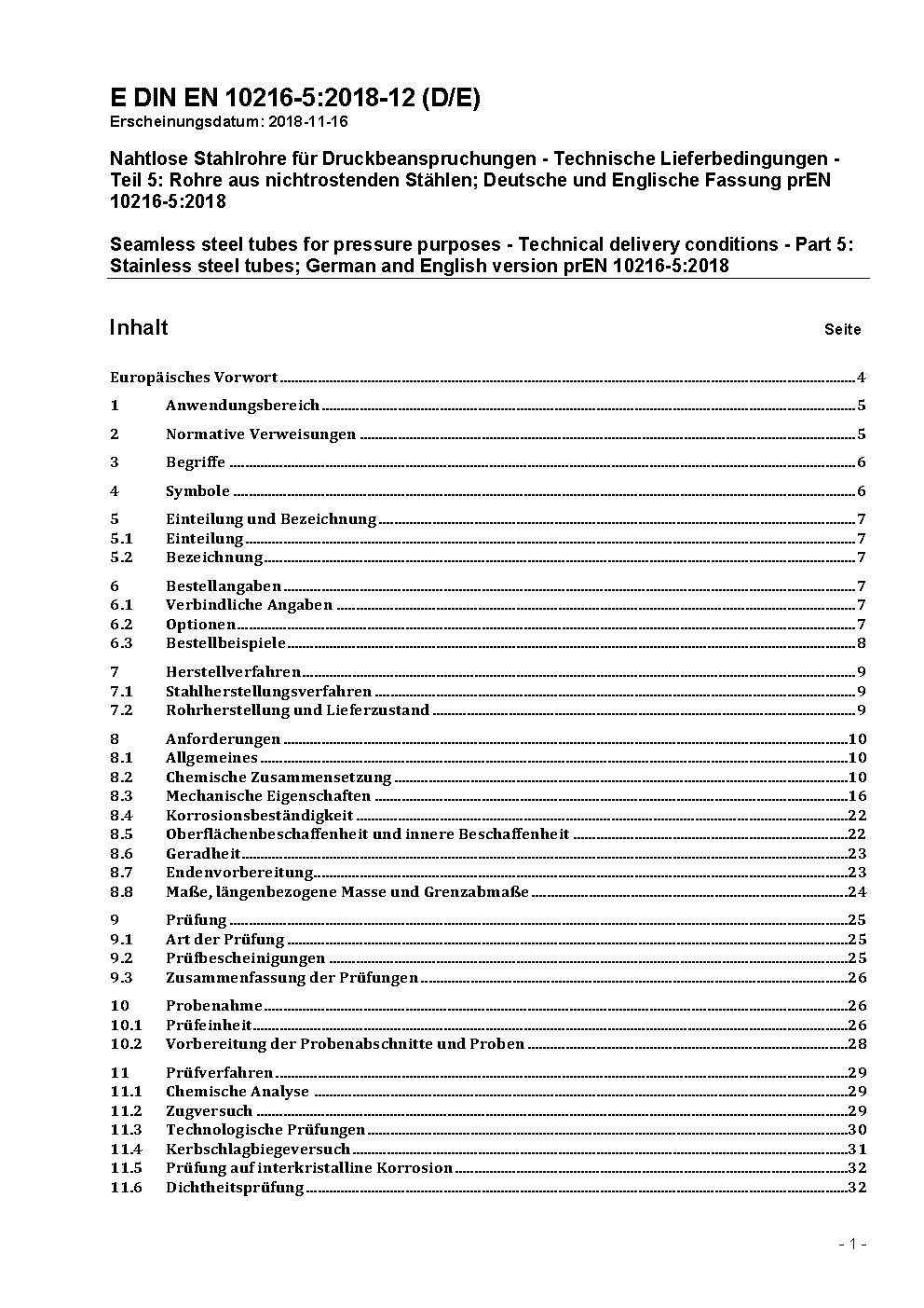 Seamless steel tubes for pressure purposes - Technical delivery conditions - Part 5: Stainless steel tubes; German version EN 10216-5:2021