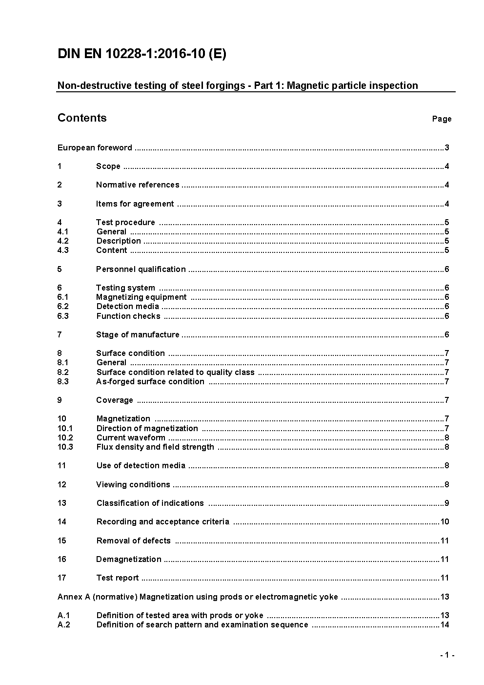 Zerstörungsfreie Prüfung von Schmiedestücken aus Stahl - Teil 1: Magnetpulverprüfung; Deutsche Fassung EN 10228-1:2016