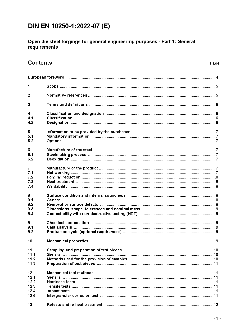 Open die steel forgings for general engineering purposes - Part 1: General requirements; German version EN 10250-1:2022