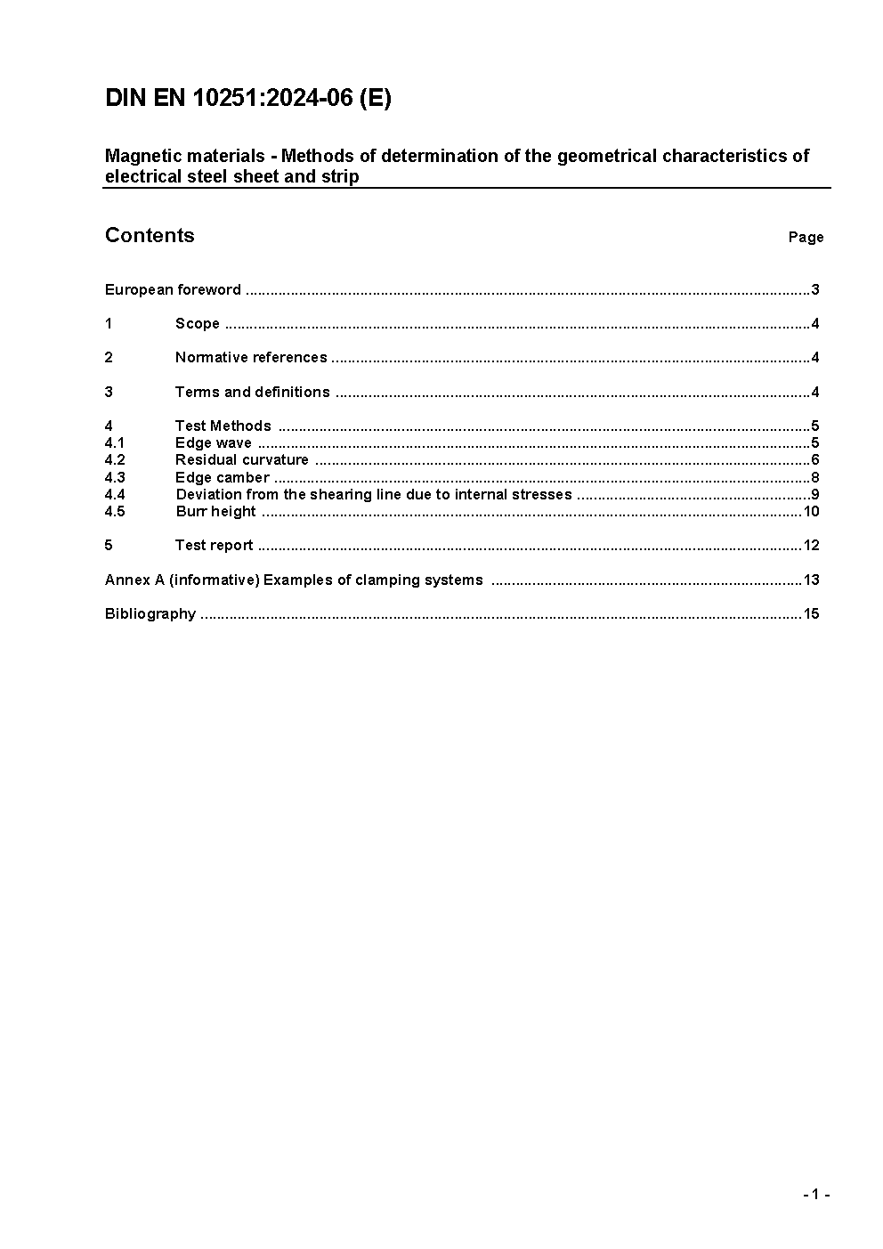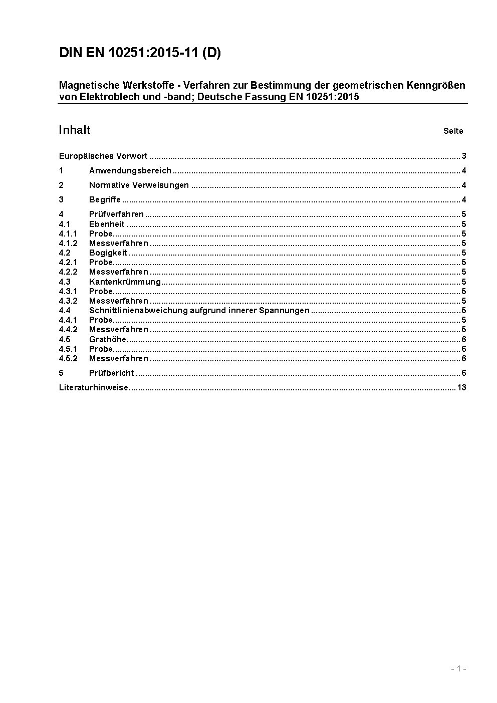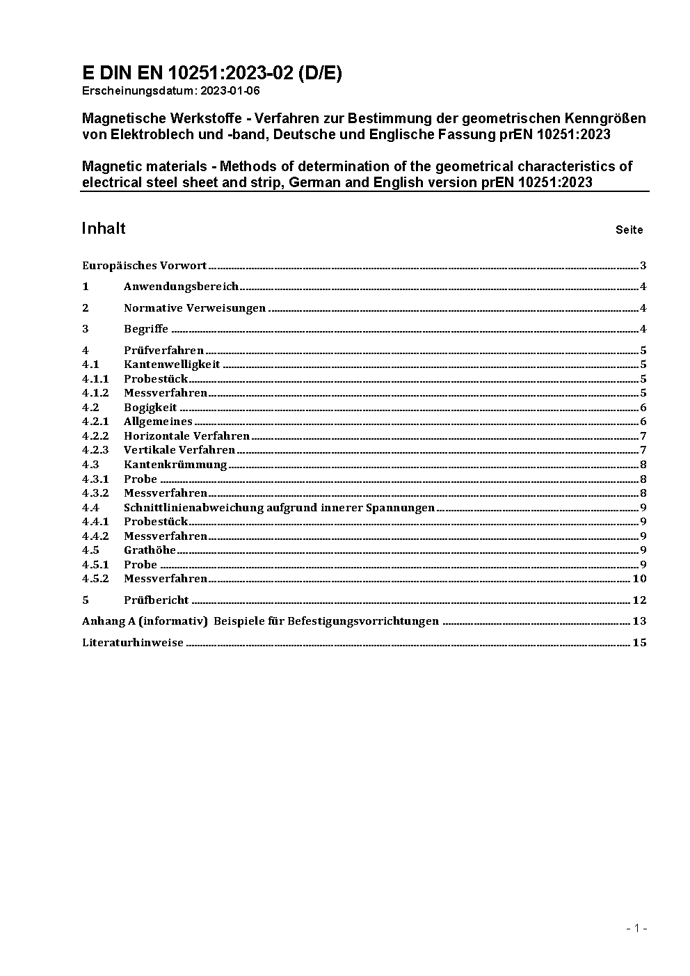 Magnetic materials - Methods of determination of the geometrical characteristics of electrical steel sheet and strip; German version FprEN 10251:2015