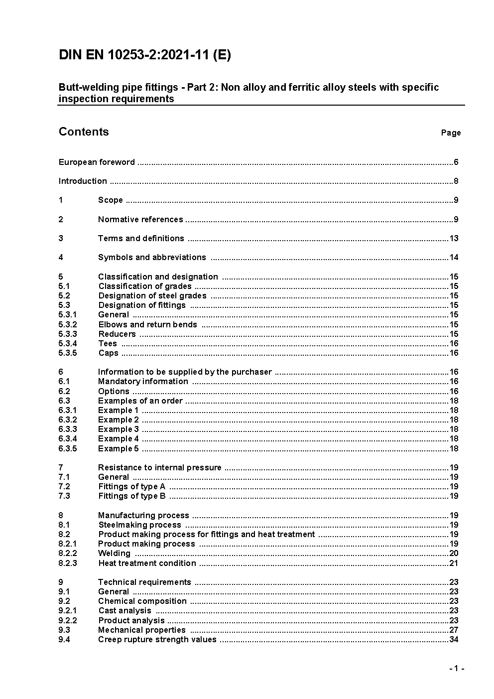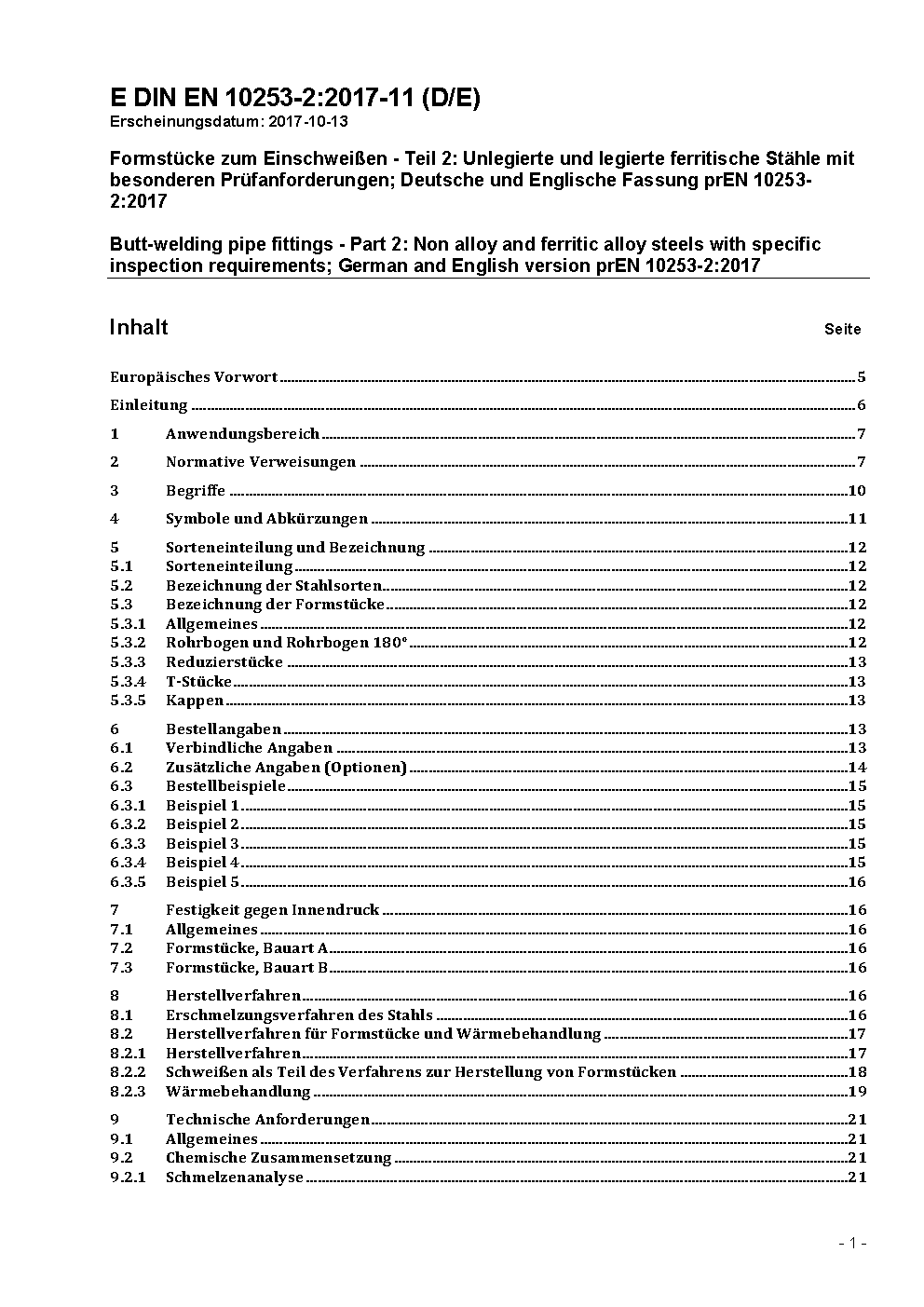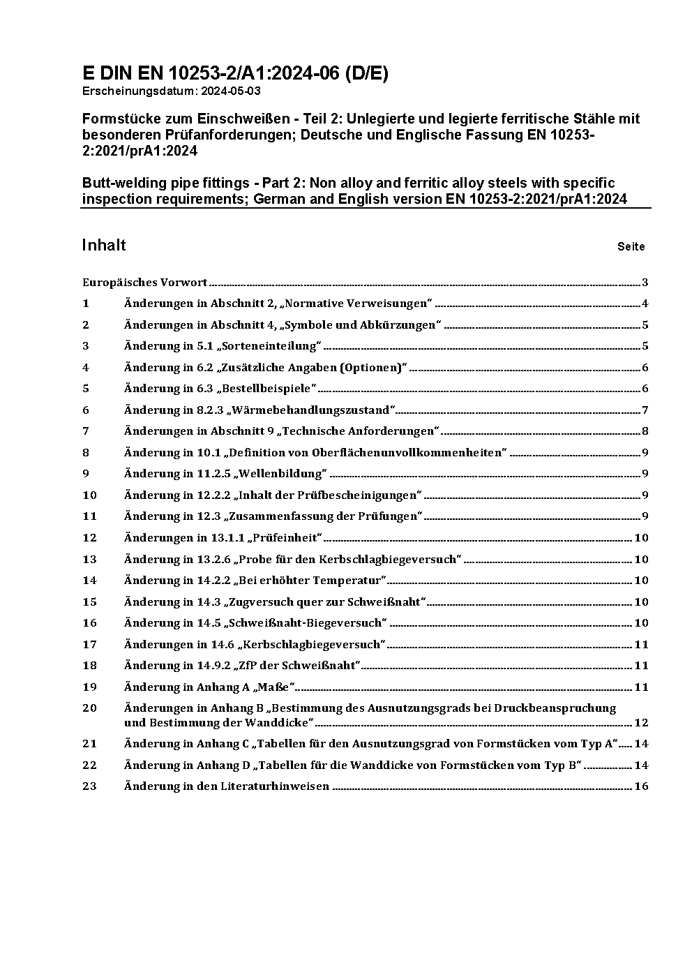 Formstücke zum Einschweißen - Teil 2: Unlegierte und legierte ferritische Stähle mit besonderen Prüfanforderungen; Deutsche Fassung EN 10253-2:2021