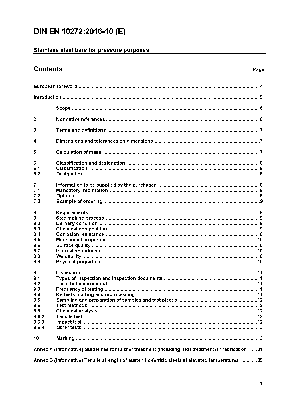 Stainless steel bars for pressure purposes; German version EN 10272:2016.