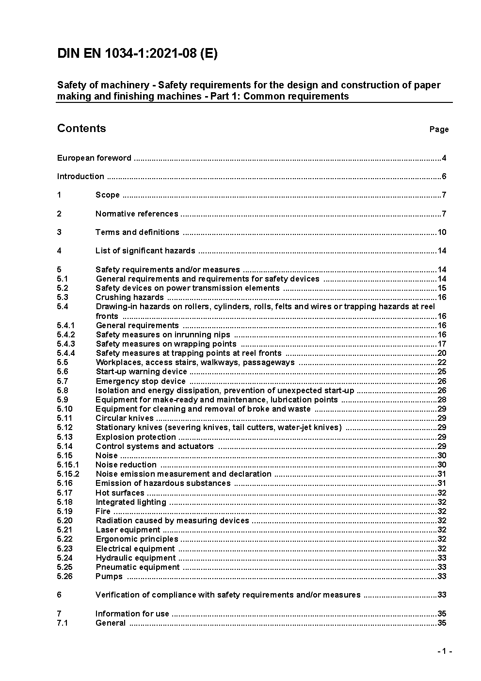 Safety of machinery - Safety requirements for the design and construction of paper making and finishing machines - Part 1: Common requirements, German and English version prEN 1034-1:2019
