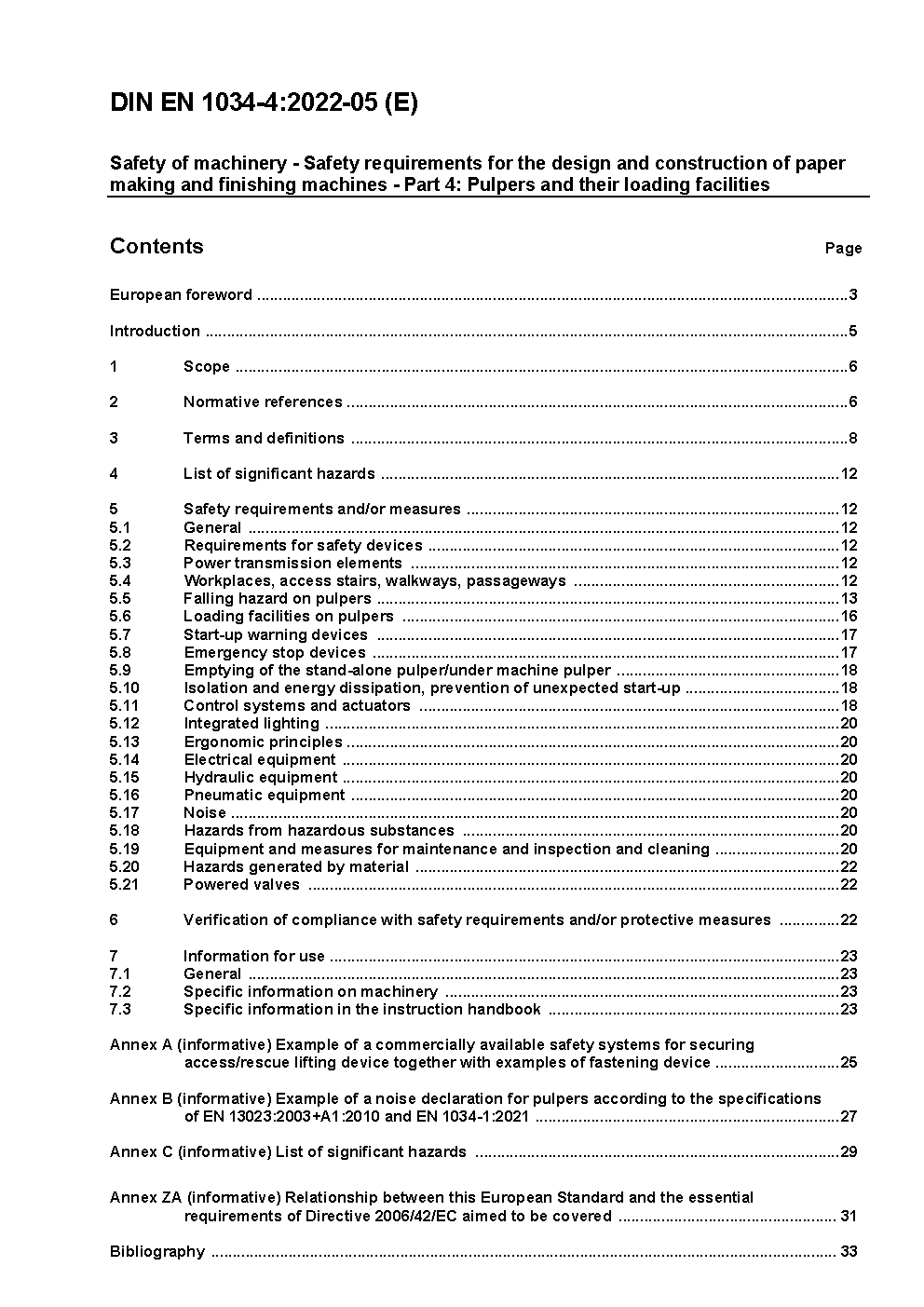 Safety of machinery - Safety requirements for the design and construction of paper making and finishing machines - Part 4: Pulpers and their loading facilities; German and English version prEN 1034-4:2020