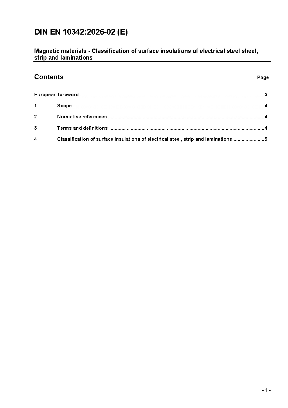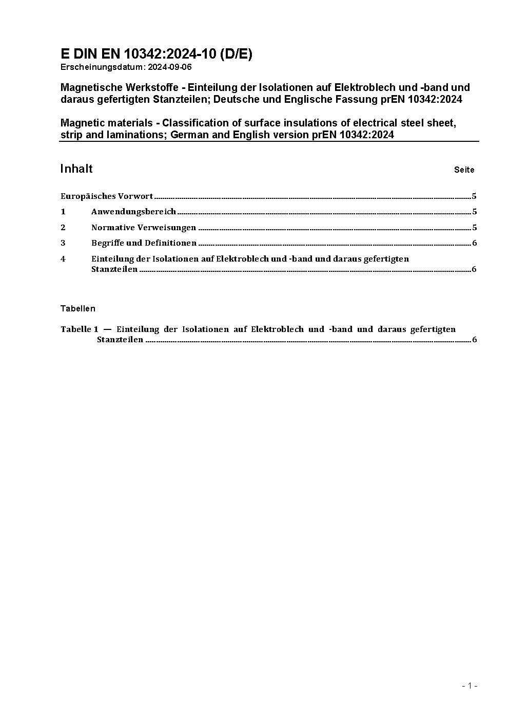 Magnetische Werkstoffe - Einteilung der Isolationen auf Elektroblech und -band und daraus gefertigten Stanzteilen; Deutsche Fassung EN 10342:2005