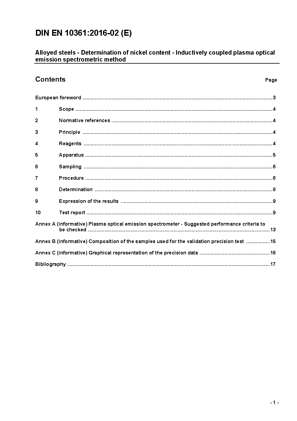 Alloyed steels - Determination of Nickel content - Inductively coupled plasma optical emission spectrometric method; German version prEN 10361:2013