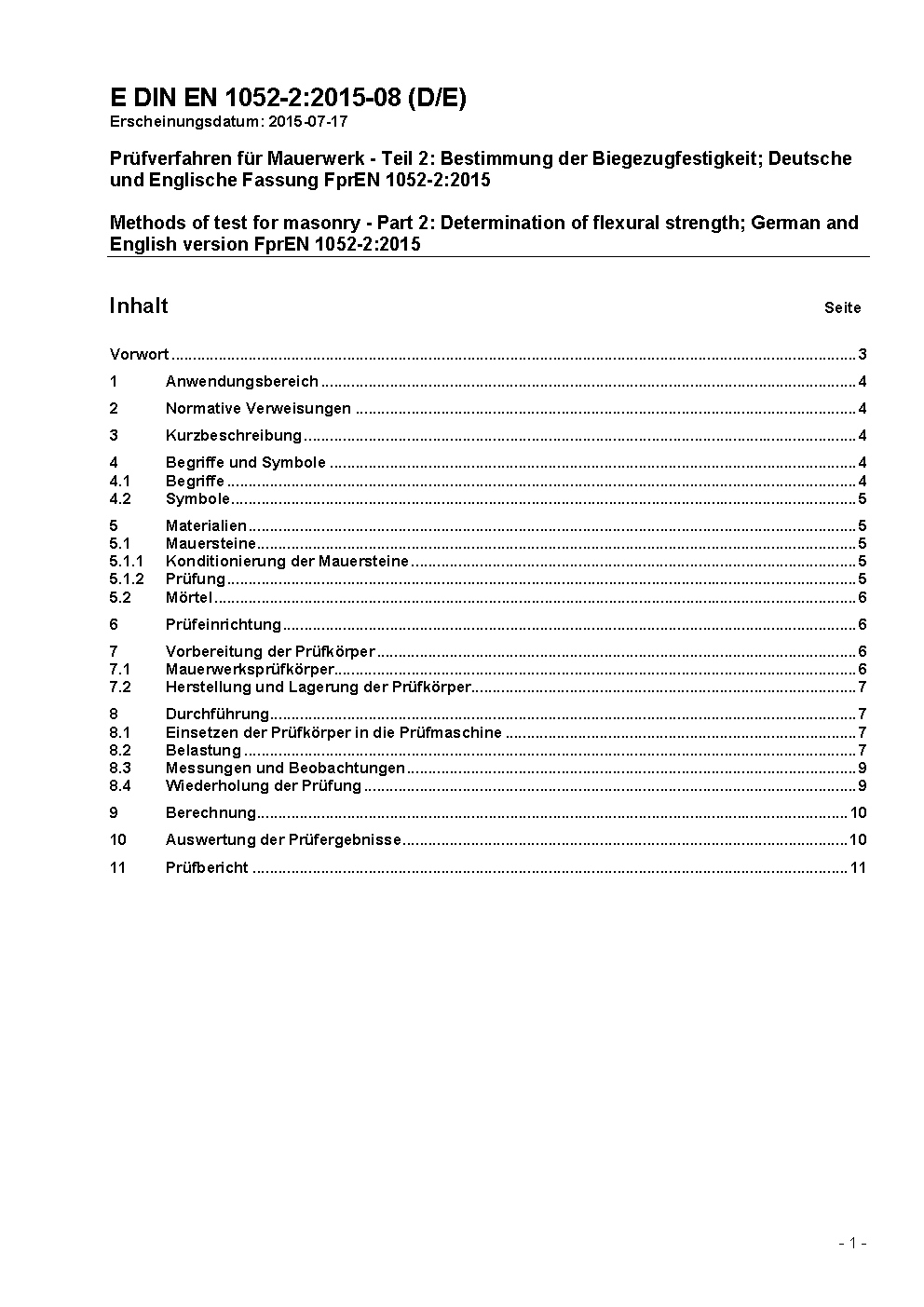 Prüfverfahren für Mauerwerk - Teil 2: Bestimmung der Biegezugfestigkeit; Deutsche Fassung EN 1052-2:1999