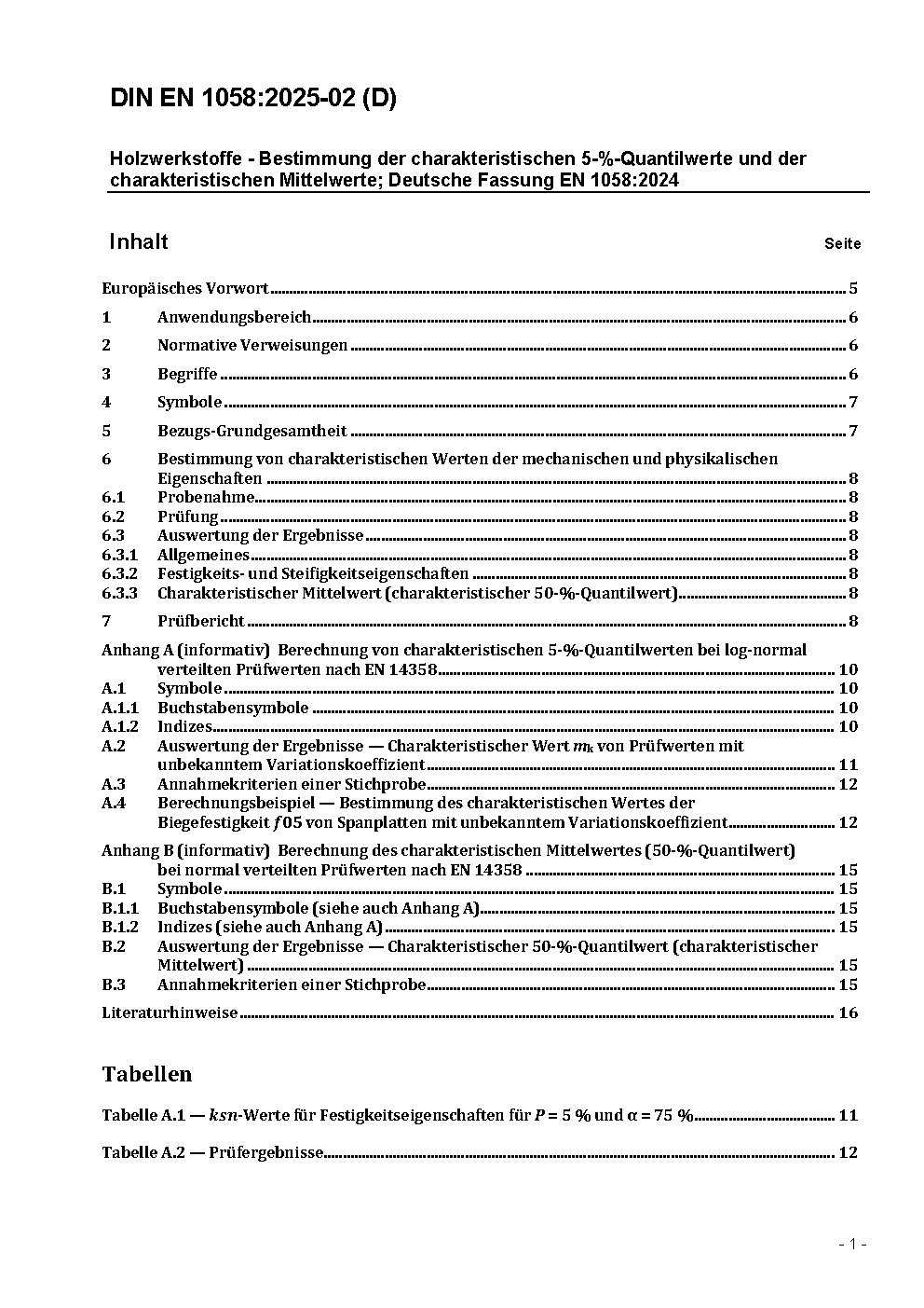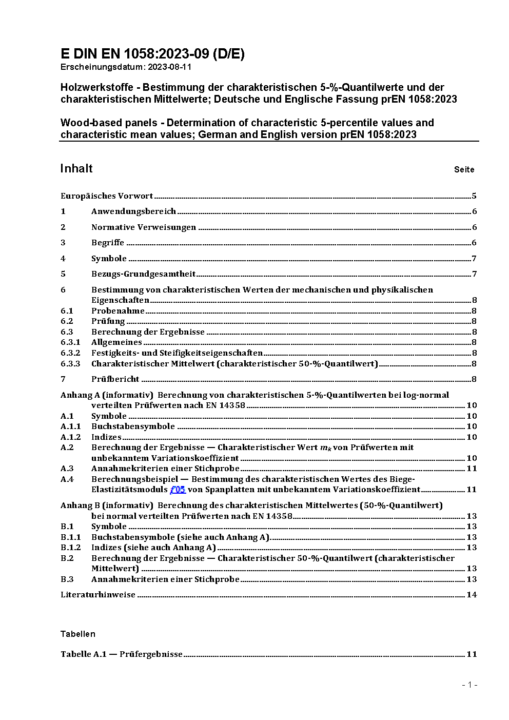 Holzwerkstoffe - Bestimmung der charakteristischen 5-%-Quantilwerte und der charakteristischen Mittelwerte; Deutsche Fassung EN 1058:2009