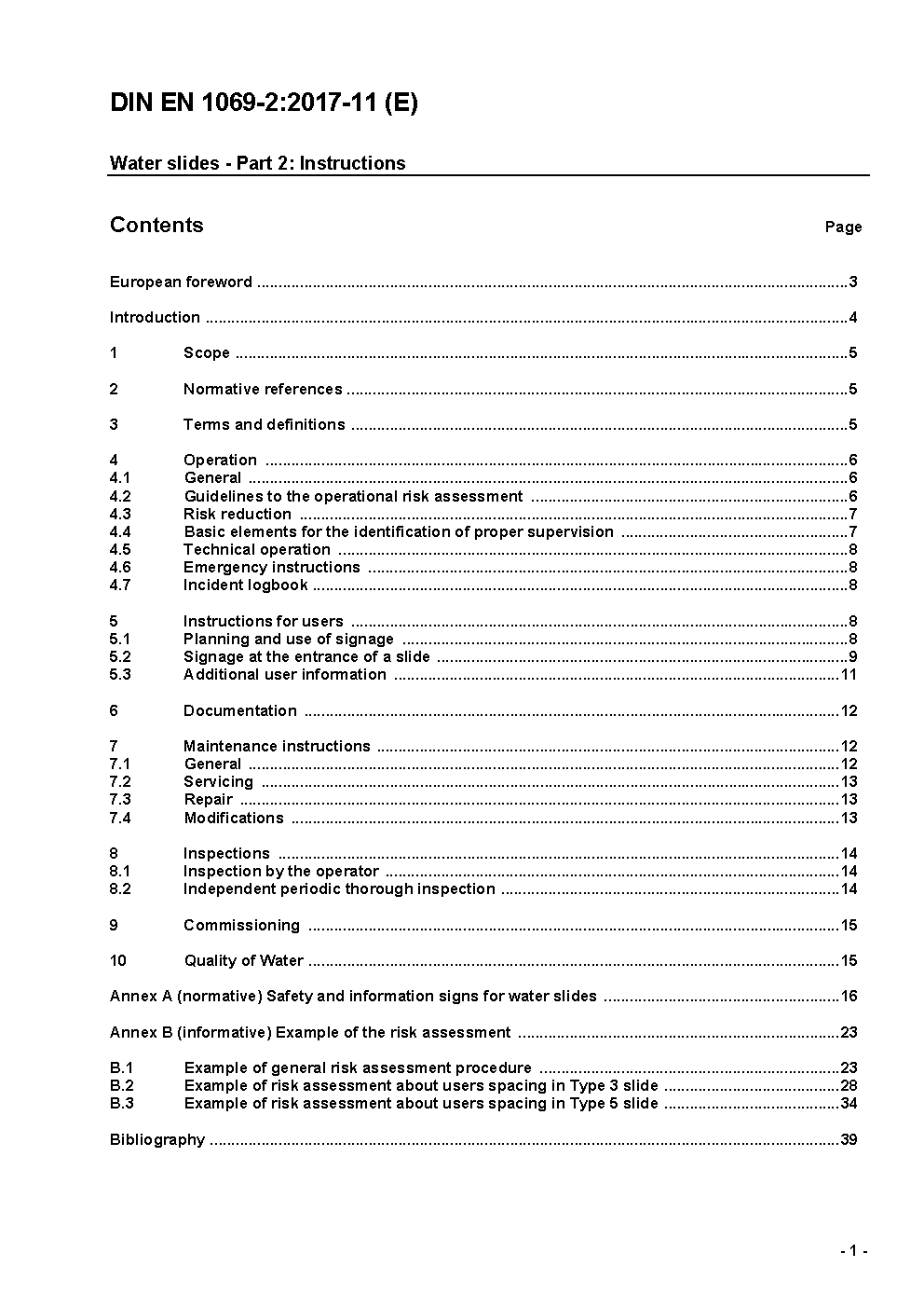 Water slides of 2 m height and more - Part 2: Instructions; German version EN 1069-2:1999.