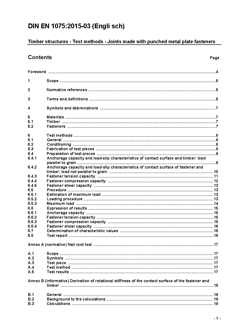 Holzbauwerke - Prüfverfahren - Verbindungen mit Nagelplatten; Deutsche Fassung EN 1075:1999