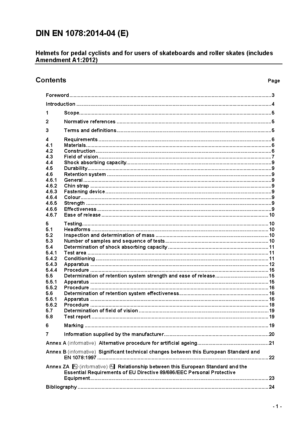 Helmets for pedal cyclists and for users of skateboards and roller skates; German version EN 1078:2012+A1:2012