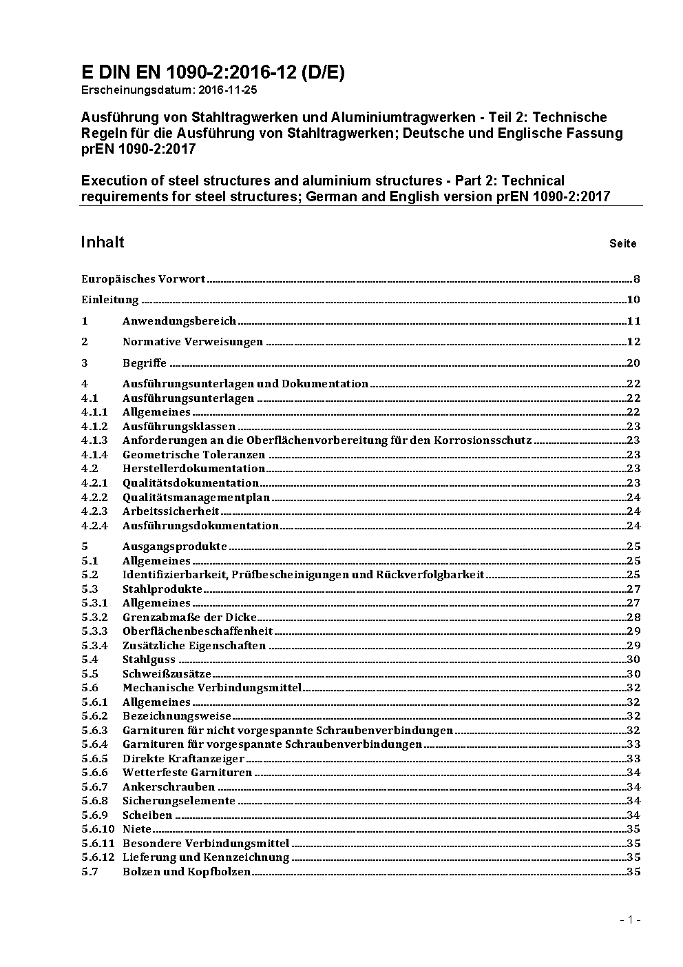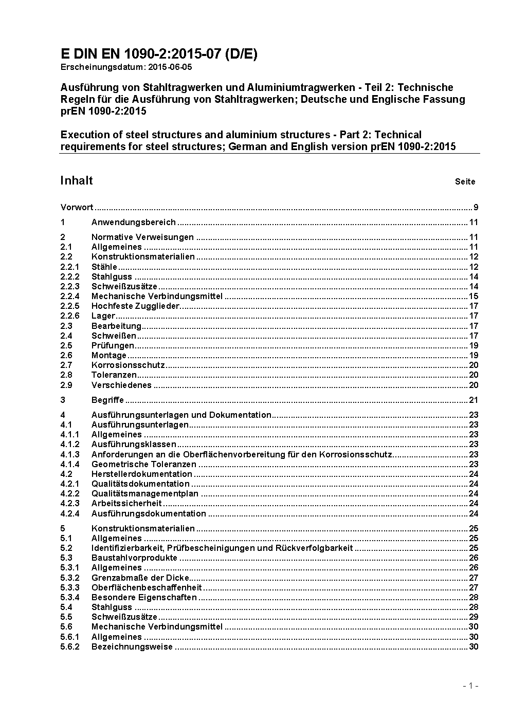 Ausführung von Stahltragwerken und Aluminiumtragwerken - Teil 2: Technische Regeln für die Ausführung von Stahltragwerken; Deutsche und Englische Fassung prEN 1090-2:2017