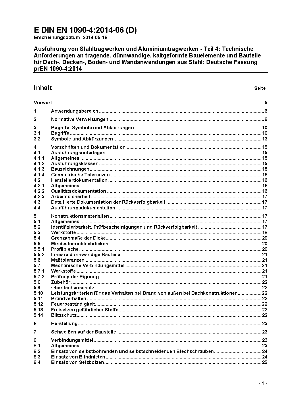 Execution of steel structures and aluminium structures - Part 4: Technical requirements for cold-formed structural steel elements and cold-formed structures for roof, ceiling, floor and wall applications; German and English version prEN 1090-4:2015