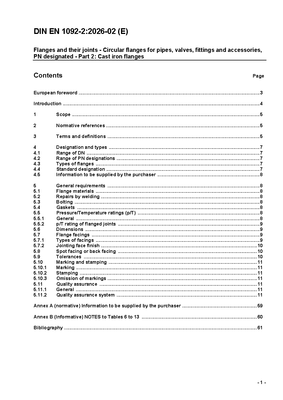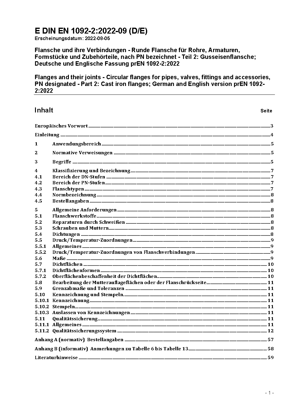 Flansche und ihre Verbindungen - Runde Flansche für Rohre, Armaturen, Formstücke und Zubehörteile, nach PN bezeichnet - Teil 2: Gußeisenflansche; Deutsche Fassung EN 1092-2:1997