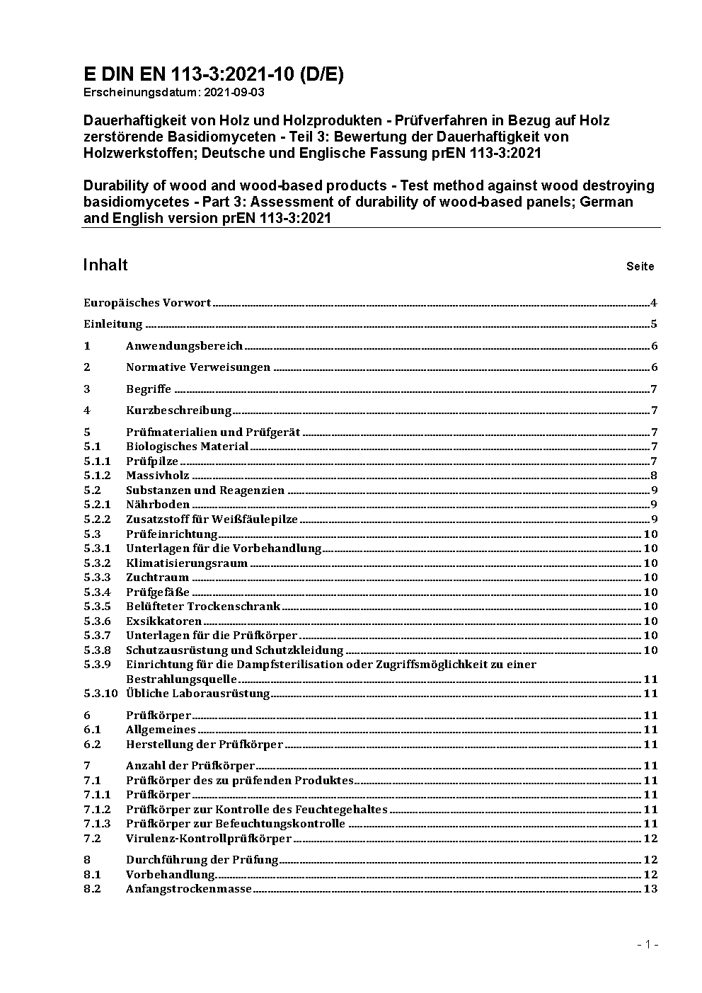 Dauerhaftigkeit von Holz und Holzprodukten - Prüfverfahren in Bezug auf Holz zerstörende Basidiomyceten - Teil 3: Bewertung der Dauerhaftigkeit von Holzwerkstoffen; Deutsche Fassung EN 113-3:2023