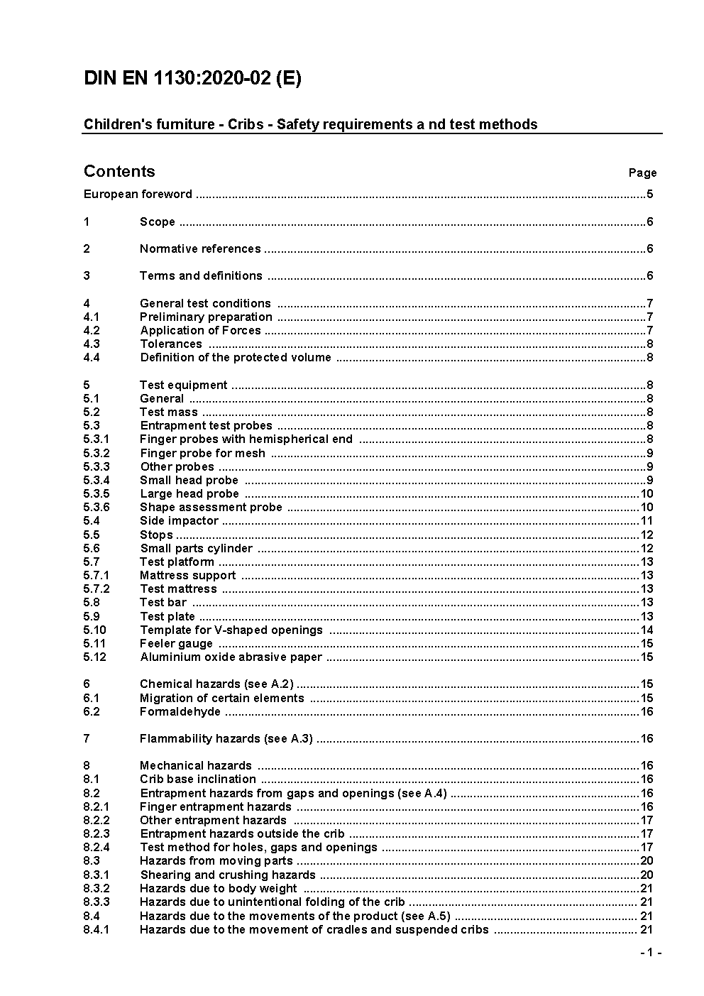 Children's Furniture - Cribs and cradles - Safety requirements and test methods; German and English version prEN 1130:2017