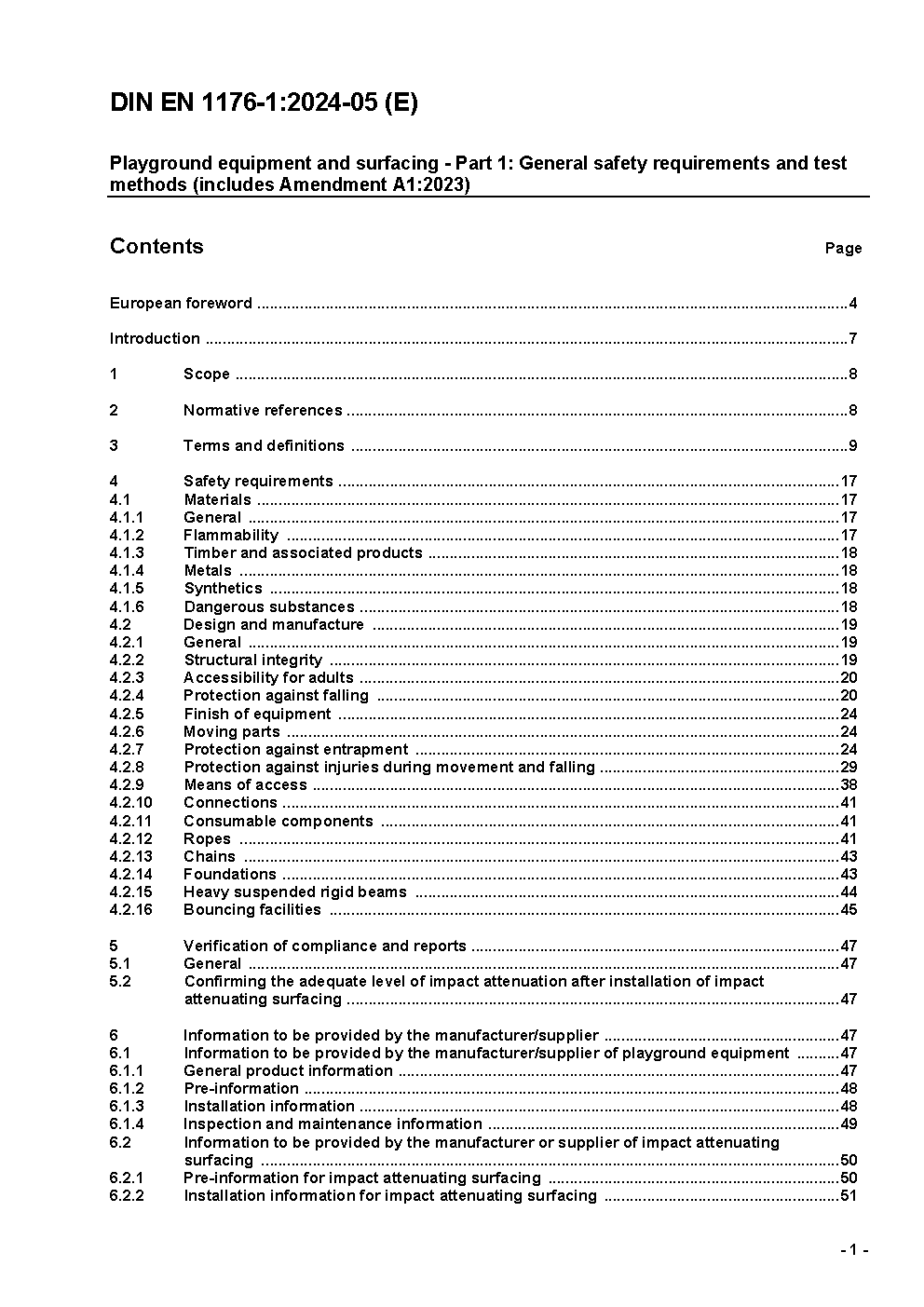 Playground equipment and surfacing - Part 1: General safety requirements and test methods; German version EN 1176-1:2008, Corrigendum to DIN EN 1176:2008-08