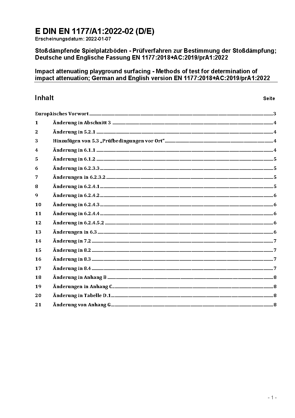 DIN EN 1177 (2002-03) remains valid alongside this standard until 2009-05-31.