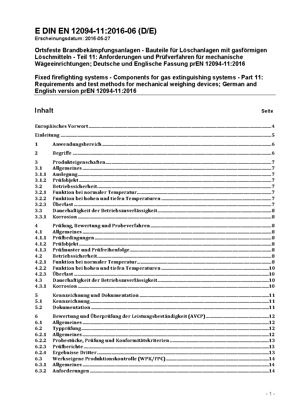 Ortsfeste Brandbekämpfungsanlagen - Bauteile für Löschanlagen mit gasförmigen Löschmitteln - Teil 11: Anforderungen und Prüfverfahren für mechanische Wägeeinrichtungen; Deutsche Fassung EN 12094-11:2003