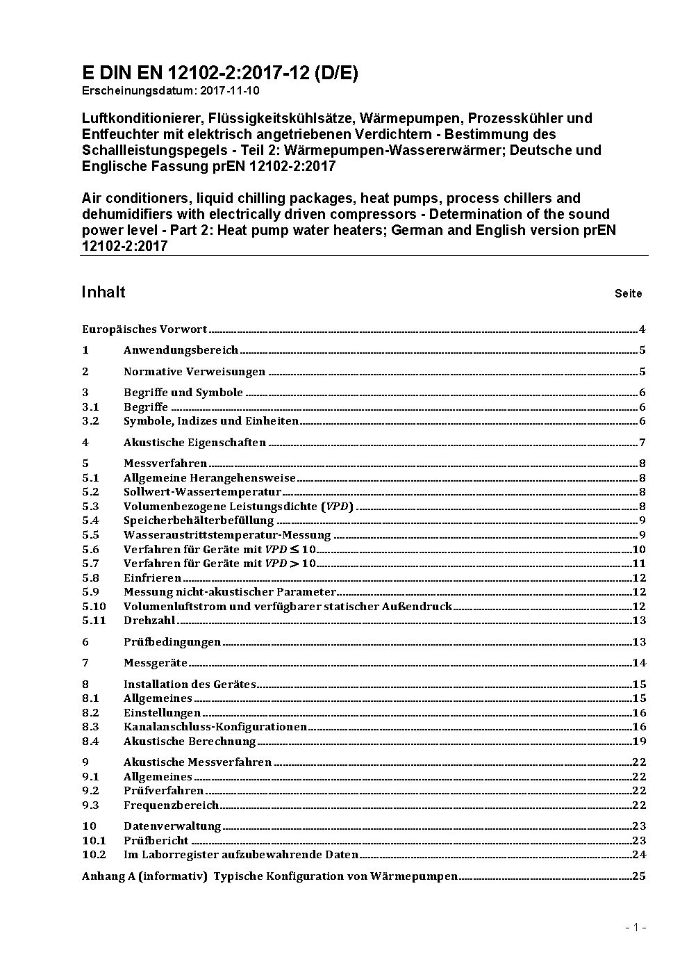 Klimageräte, Flüssigkeitskühlsätze, Wärmepumpen und Entfeuchter mit elektrisch angetriebenen Verdichtern - Bestimmung des Schallleistungspegels - Teil 2: Wassererhitzer mit Wärmepumpen; Deutsche und Englische Fassung prEN 12102-2:2016