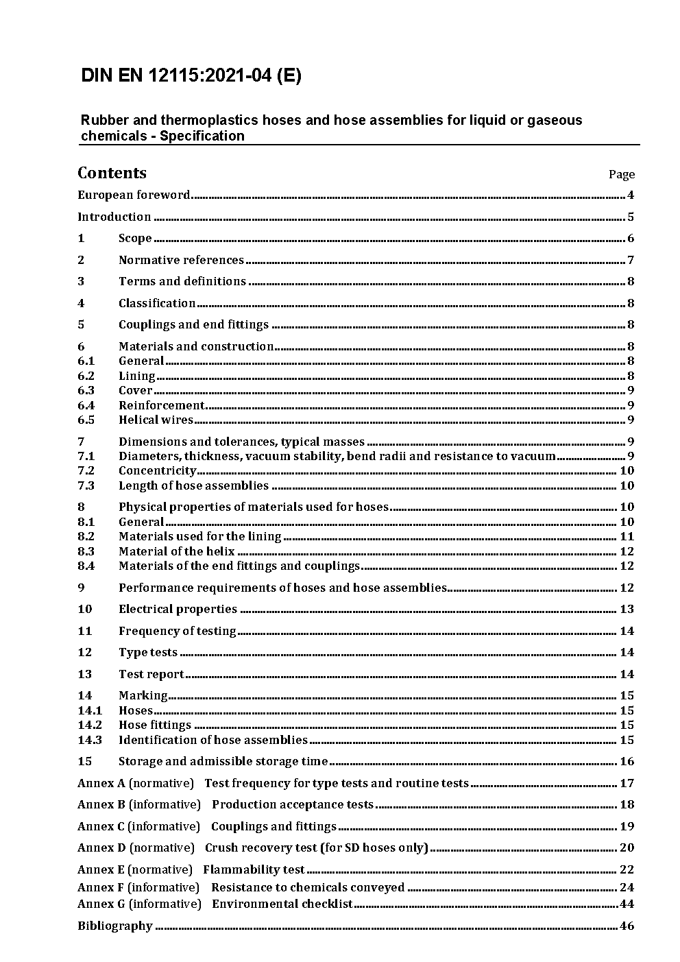 Rubber and thermoplastics hoses and hose assemblies for liquid or gaseous chemicals - Specification; German version EN 12115:2011