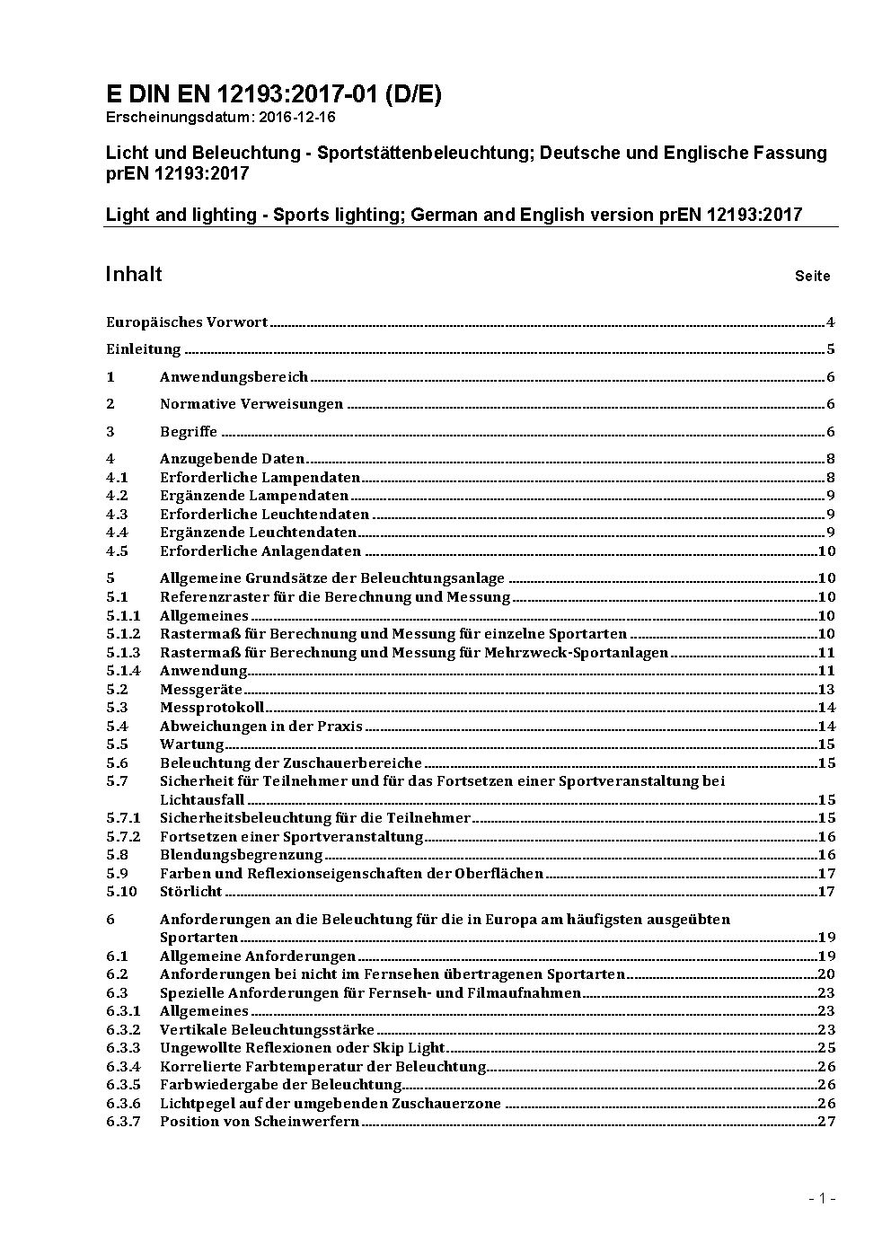 Light and lighting - Sports lighting; German version EN 12193:2007