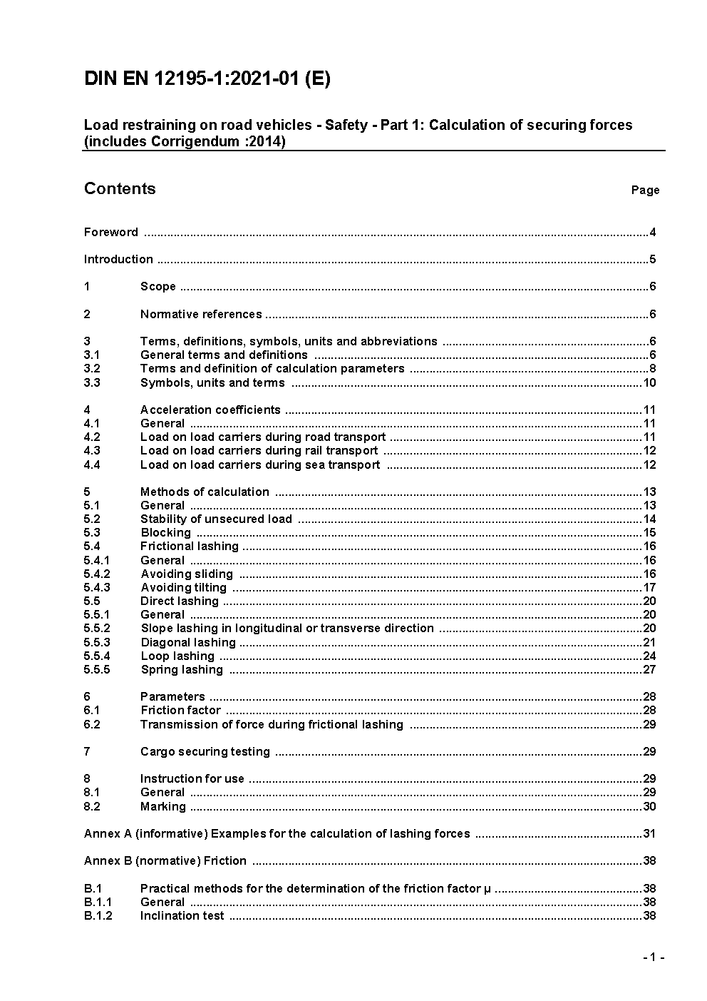 Ladungssicherung auf Straßenfahrzeugen - Sicherheit - Teil 1: Berechnung von Sicherungskräften; Deutsche Fassung EN 12195-1:2010